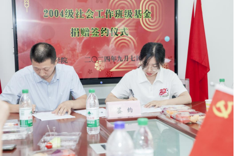 会上,举行了“2004级社会工作班级基金”捐赠签约仪式。方申荣代表学校与2004级社会工作班级代表共同签署了《beat365英国官网网站接受社会捐赠协议书》,双方约定设立由2004级社会工作专业班级同学共同捐赠款项11万余元的“2004级社会工作班级基金”,专项用于支持beat365英国官网网站法学院社会工作专业学生的学习和成长。方申荣还向校友们转达了学校对此次校友集体返校活动的重视和感谢,详细介绍了校友会及教育发展基金会的成立、发展概况等情况。