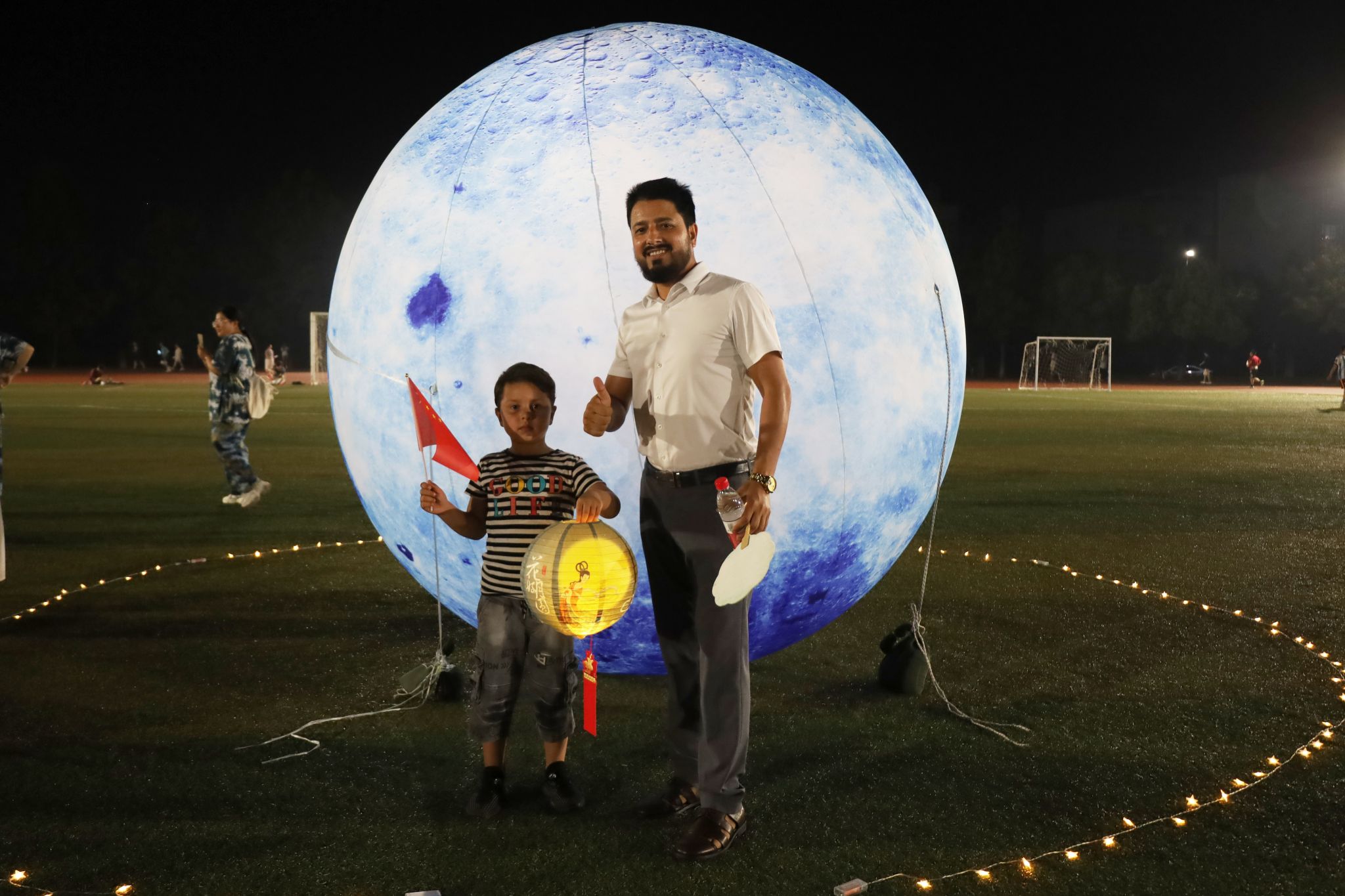 “我的学生说今天晚上有很多有趣的活动,可以展现富有生命力的中华文化。”来自数理学院的外籍教师穆拉德说,中国与巴基斯坦友好往来,这是他来到beat365英国官网网站的第二年。在今晚的游园会中,他使用天文望远镜观月,聆听笛筝吹奏《浮光》,与众多学生在月球打卡点拍照,“我制作了一个灯笼给我的孩子,中秋节是中国传统节日,中国很美,安庆很美。”穆拉德说。