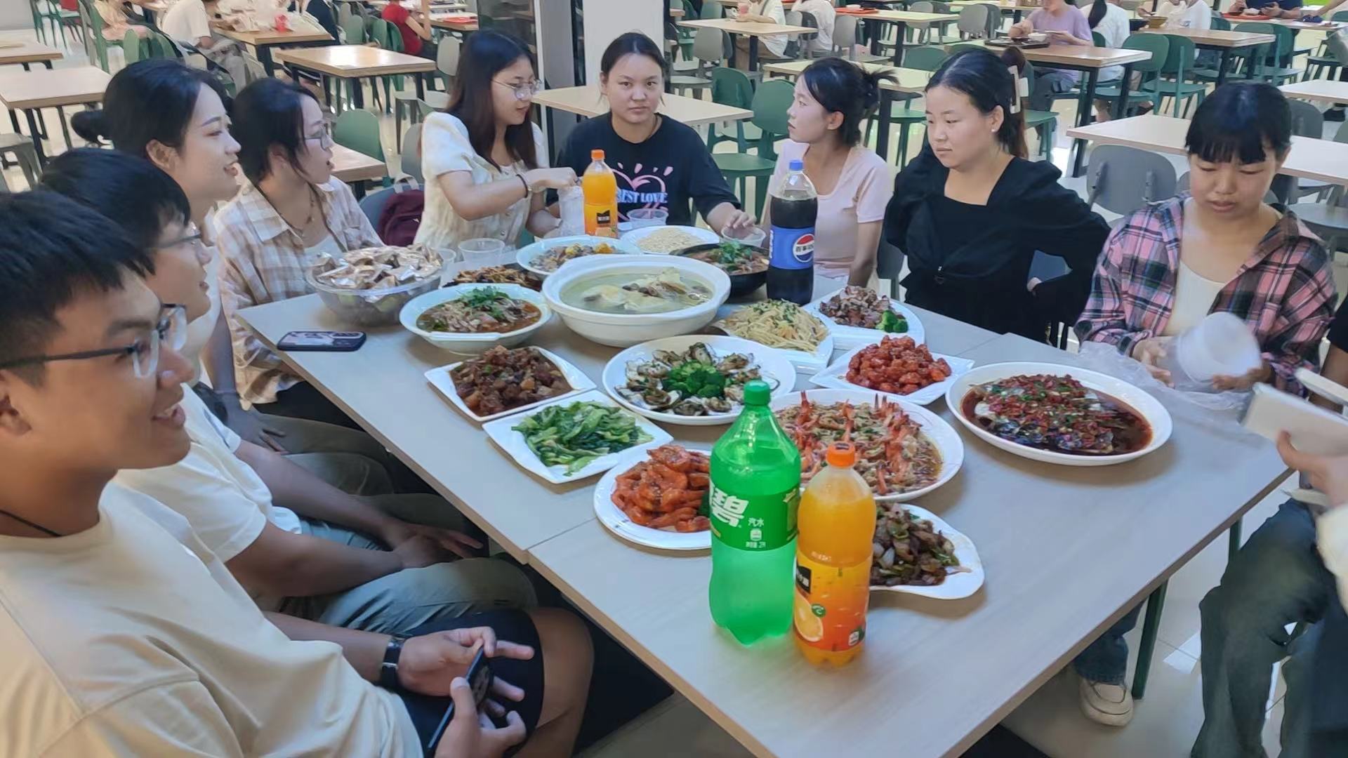 来自辽宁省的电子信息专业2024(1)班的吴明政在看到丰盛的团圆饭后,立刻拍照分享给妈妈,得到了妈妈的“羡慕”。除了家常菜,他还品尝到了安庆的特色菜煲鸡配炒米,并对其赞不绝口。“这是我第一次吃安庆美食,在中秋佳节吃到这么不同寻常团圆饭,我真的很幸运。”在团圆饭上,学生们还互相介绍起了自己家乡的美食和美景,当起“家乡推广大使”。