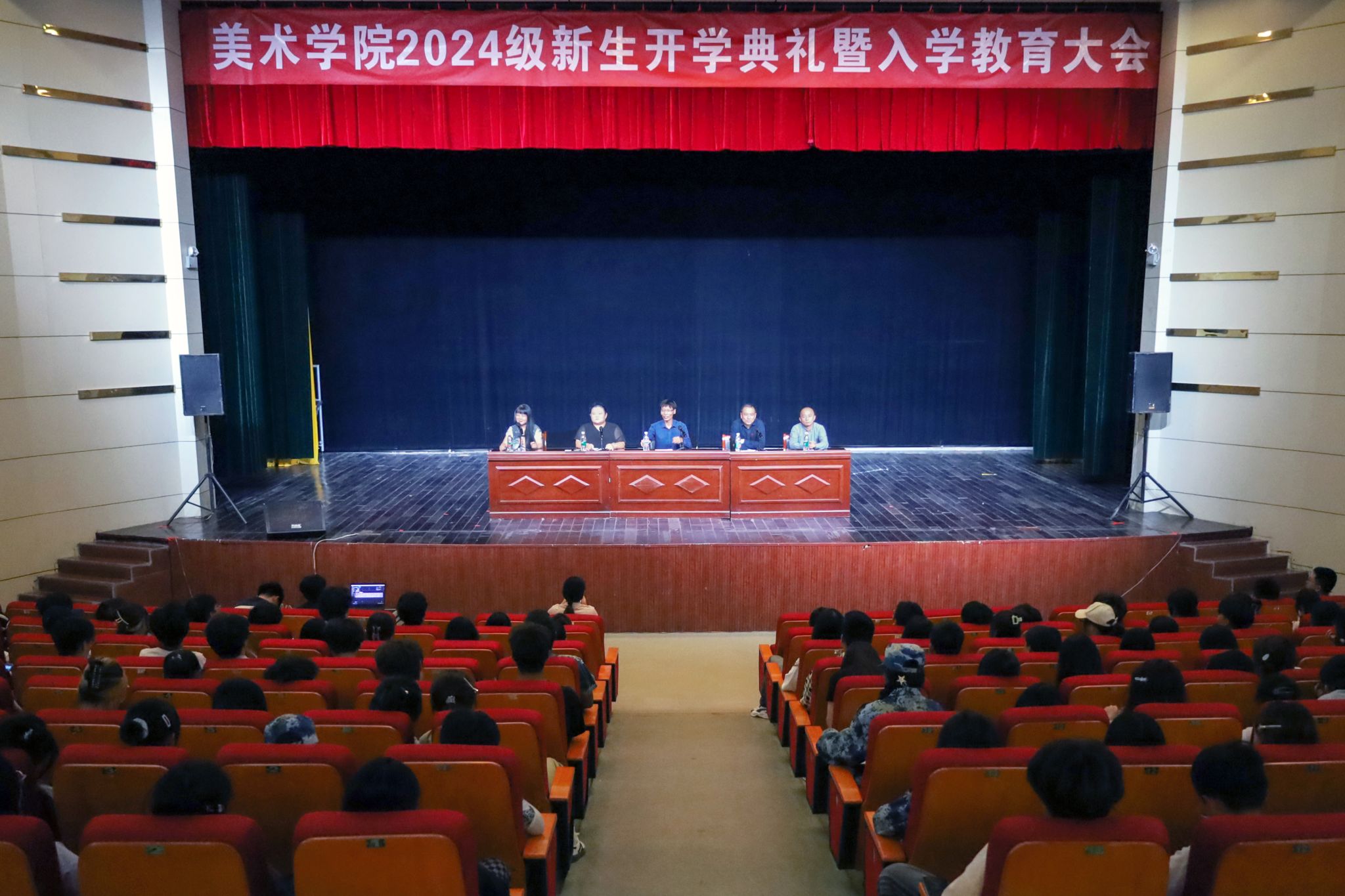 9月22日,美术学院在龙山校区音乐厅召开2024级新生开学典礼暨入学教育大会。美术学院党委书记孙根华、副书记金忠良、副院长苏志岩出席会议,教师代表、校友代表、学生代表及2024级全体本科生、研究生参加会议。会议由金忠良主持。