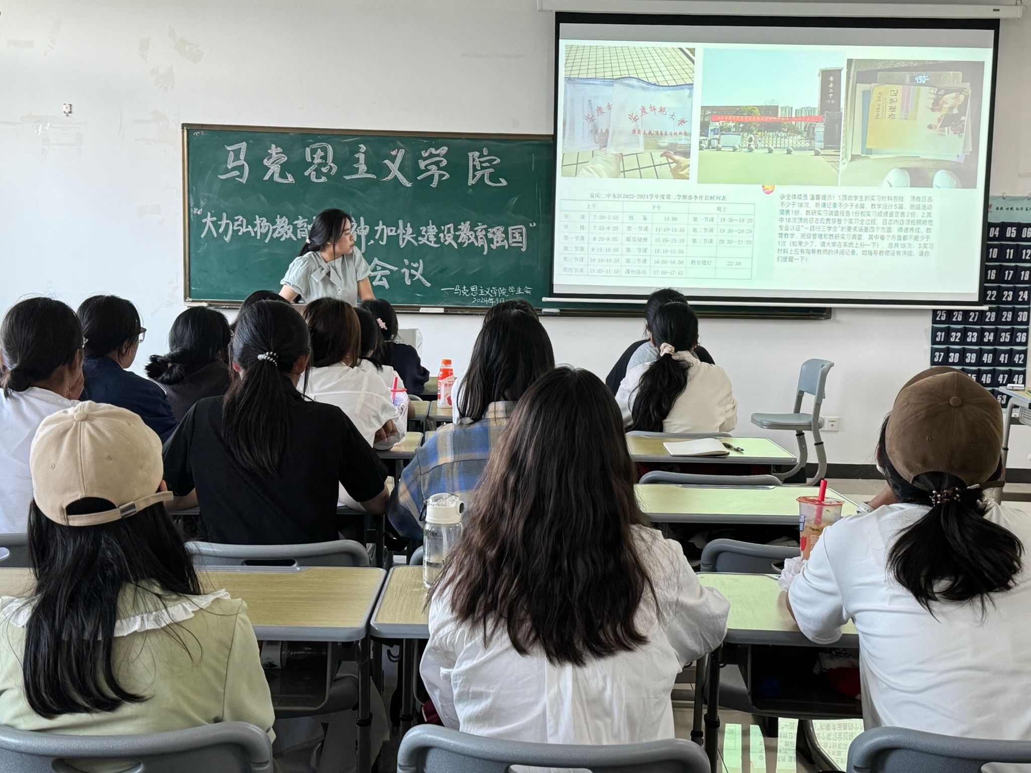 9月28日,马克思主义学院在Q楼304教室举办“大力弘扬教育家精神,加快建设教育强国”学习会议,100余名学生参加此次活动。