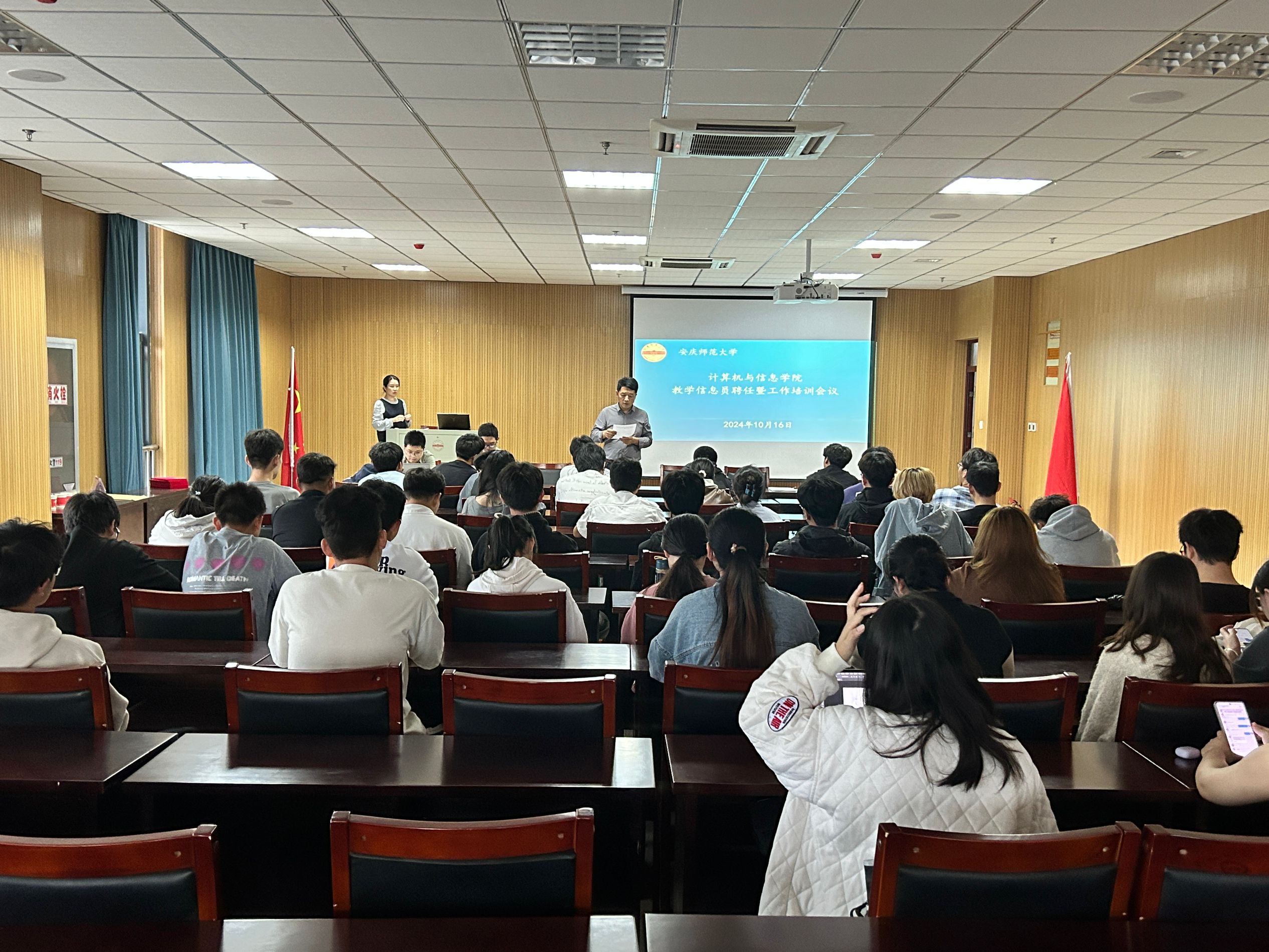 10月16日,计算机与信息学院在L302教室召开教学信息员聘任暨工作培训会议。计算机与信息学院副院长吴海峰、教学办公室全体老师以及各班教学信息员参加会议。