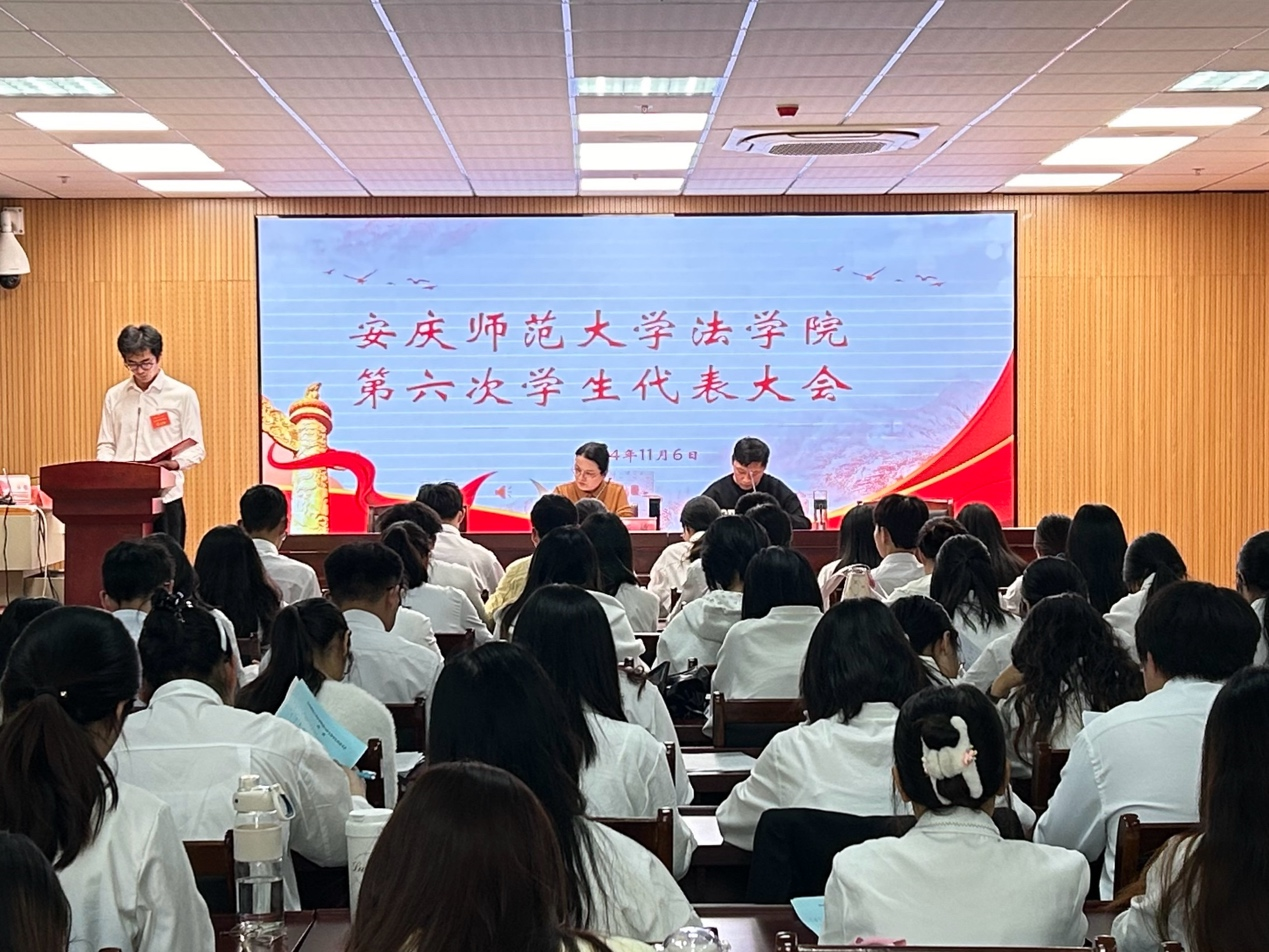 11月6日,法学院第六次学生代表大会在O楼102报告厅召开。法学院党委书记钱敏、团委负责人出席大会。95名本科生代表参加本次大会。