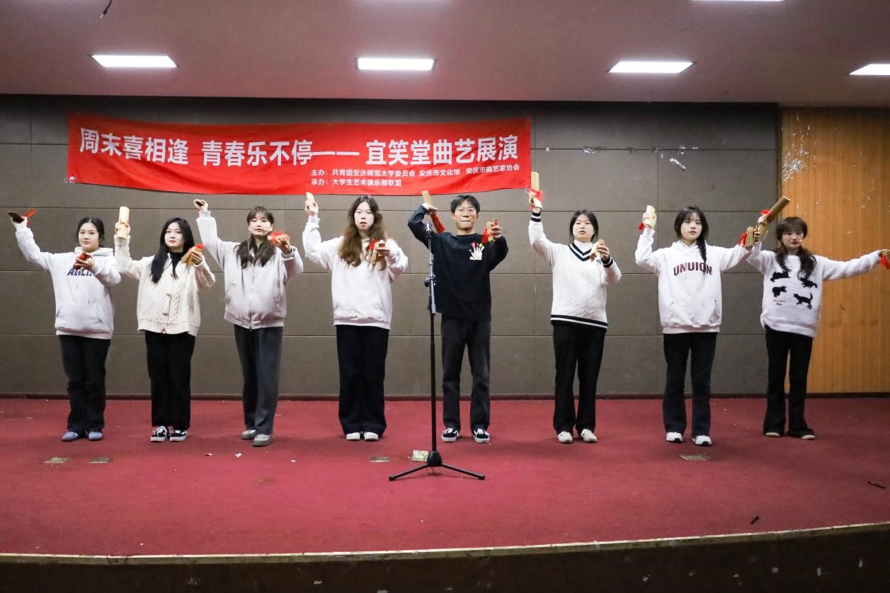 据了解,宜笑堂曲艺俱乐部自2019年成立以来,已在校园内多次开展曲艺展演活动。这些活动不仅传承和弘扬了中华优秀传统文化,更激发了学生们对曲艺文化的兴趣和热爱,培养了一批批年轻的曲艺爱好者。“不仅是台上的演员在表演中传承曲艺,台下的观众在观看的过程中也能够深入地了解曲艺文化的魅力。”指导教师刘丙福说。(撰稿:学生记者 张淑慧 摄影:学生记者 王娜 编辑:江伟 审核:汪洋 赵丽丽)