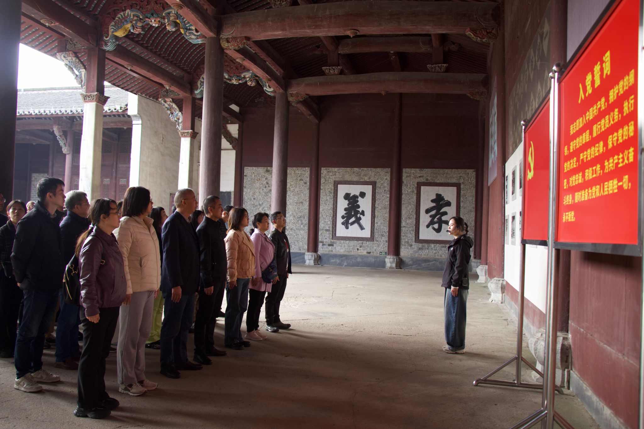 鉴往知来,师生党员们一行走进云岭新四军军部旧址、军部大会堂旧址,参观珍贵的历史遗物以及抗战时期的文献资料,瞻仰革命前辈浴血奋战的光荣历史。在展馆的“军民鱼水情”展区,党员们被军民同心、共同抗敌的感人场景深深打动。在“铁军精神”展区,党员们详细了解新四军在司令员叶挺领导下,如何在艰苦卓绝的斗争中锻造“铁一般的信念、铁一般的纪律、铁一般的担当”。