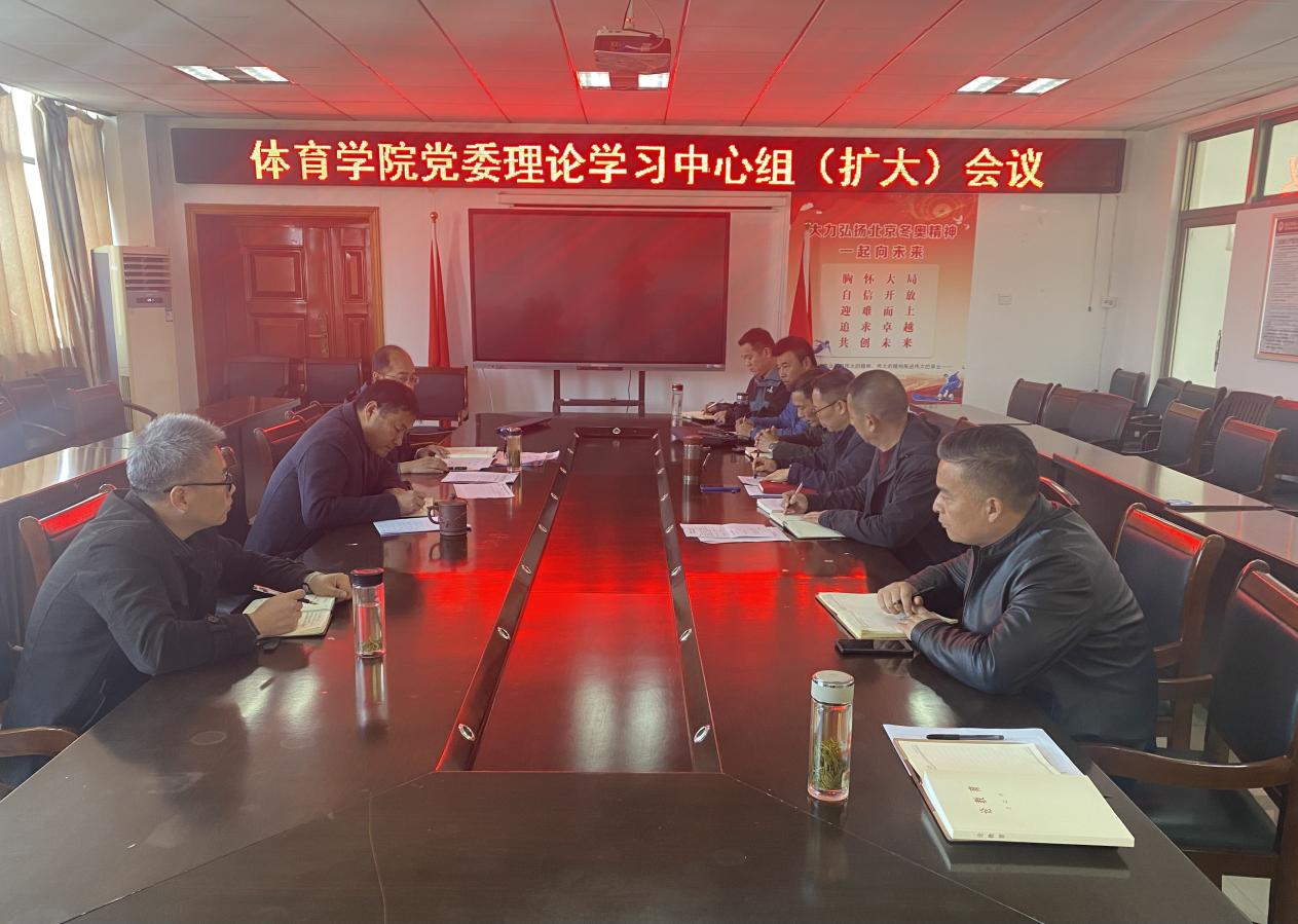 11月27日,体育学院党委在体育馆三楼会议室召开党委理论学习中心组(扩大)会议,专题学习习近平同志《论教育》。会议由体育学院党委书记王玮主持,学院党委委员、党委秘书、组织员、各党支部书记、教研室主任参加会议。