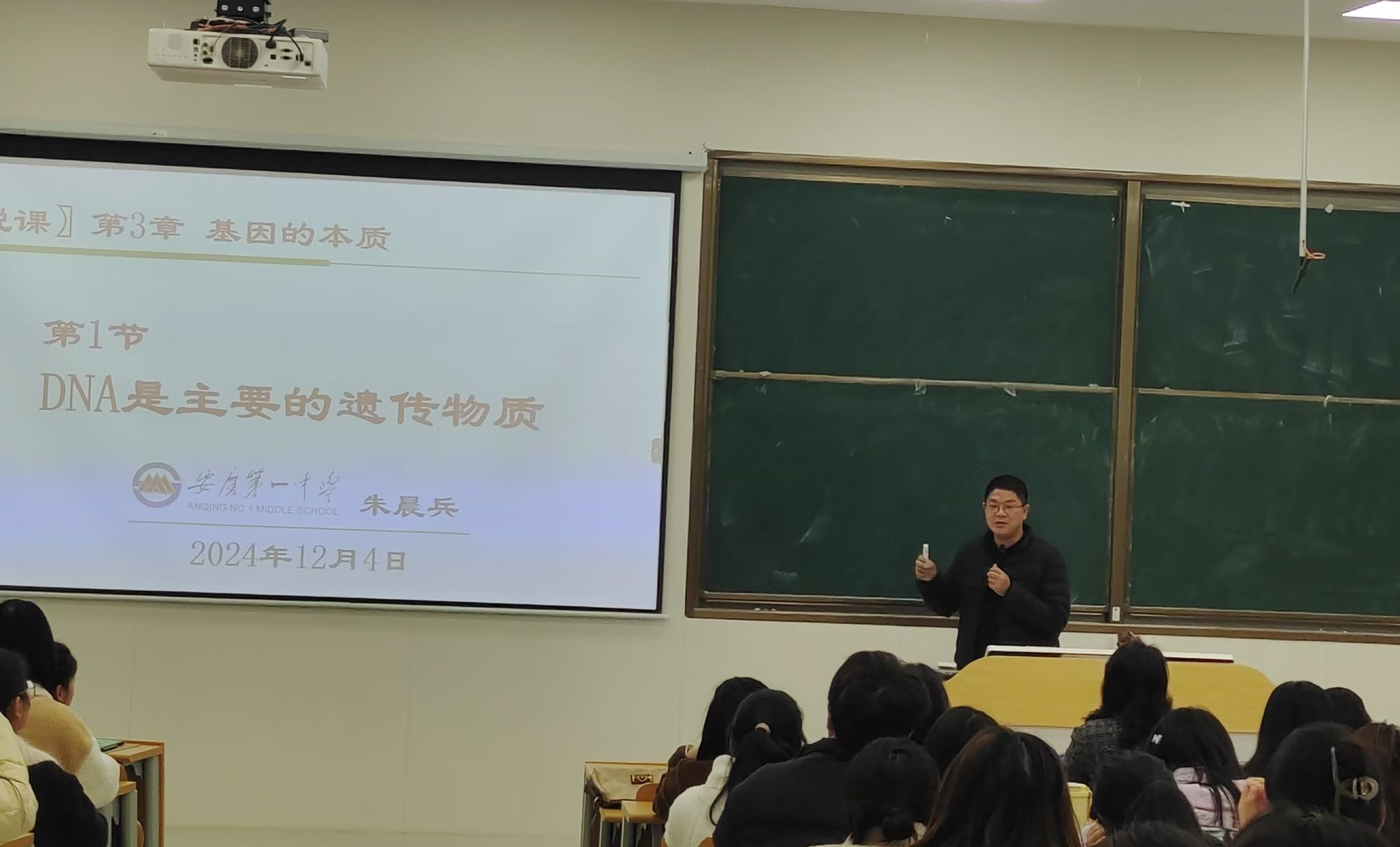 朱晨兵以“DNA是主要的遗传物质”为主题,回顾了人类对遗传物质研究和探索的历程,使在座同学对相关领域知识有了初步的认知与了解,并围绕教材内容、教学过程等方面展开论述,通过实践生动展示了如何展开课堂教学,对于教学实践过程的展开具有十分重要的指导意义。