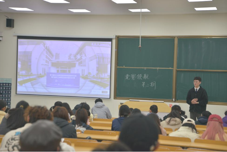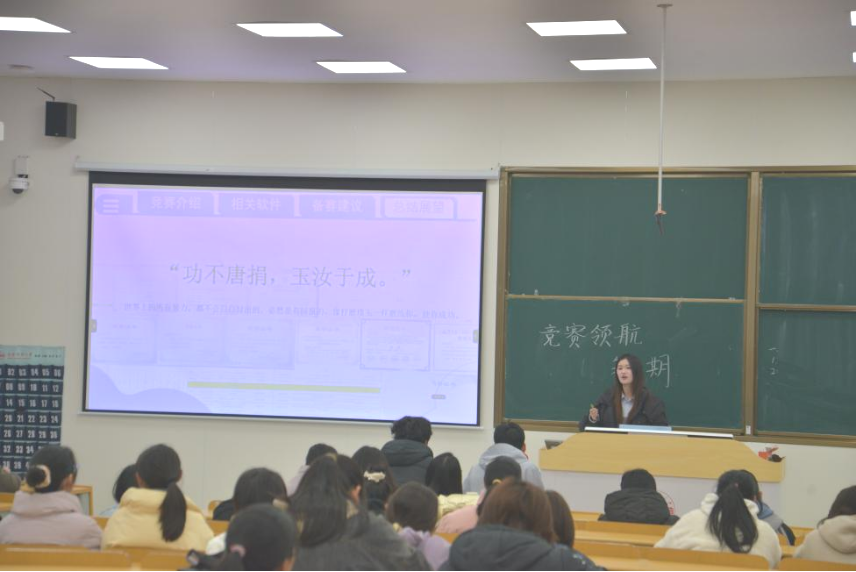 12月8日,数理学院在C108举办“竞赛领航”系列活动——竞赛经验分享会(第二期),进一步加强同学们“以赛促学、逐梦领航”的竞赛意识和经验获取。本次活动由大学物理教师党支部(教研室)和高等数学教师党支部(教研室)主办、大学生科学技术创新协会承办。本期分享会特别邀请了数理学院师范生技能大赛负责人孙建和在师范生技能比赛中获奖的谢雅雯、卢佳会、王宇等三位同学作为主讲嘉宾。