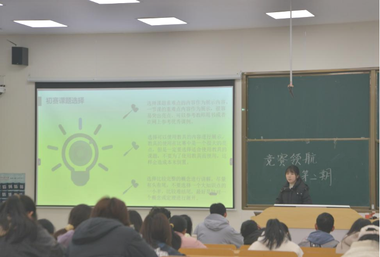 孙建成以“师范生教学技能竞赛动员宣讲”为主题发表精彩演讲。他以其深厚的学术底蕴和丰富的指导经验,深入浅出地分析了师范生教学技能竞赛的核心价值和备赛策略。他强调,竞赛不仅是知识的较量,更是思维方式和竞赛技巧的展现。孙老师鼓励同学们在日常学习中,不仅要注重知识的积累,更要培养分析问题和解决问题的能力。他还分享了自己在指导学生备赛过程中的心得体会,为同学们提供了宝贵的建议。