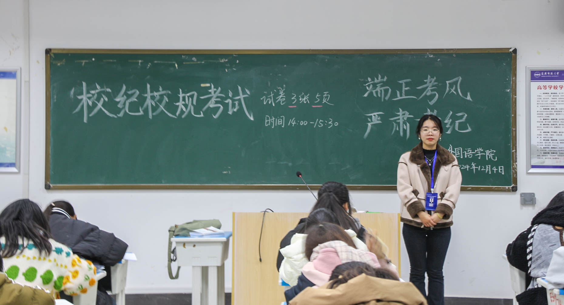 近日,外国语学院举行2024级新生校纪校规考试。2024级全体新生参加此次考试,学工组老师巡考,高年级学生党员、发展对象和入党积极分子负责监考和阅卷工作。