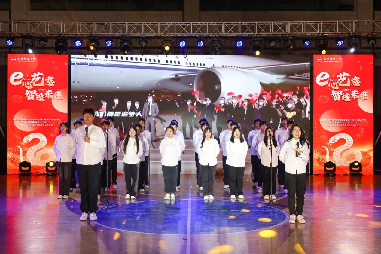 12月15日,美术学院、电子工程与智能制造学院、计算机与信息学院共同举办“e心艺意 智造未来”迎新晚会,各学院党政班子出席晚会,各专、兼职辅导员以及1000余名学生在体育馆共享这场充满青春与朝气的演出。
