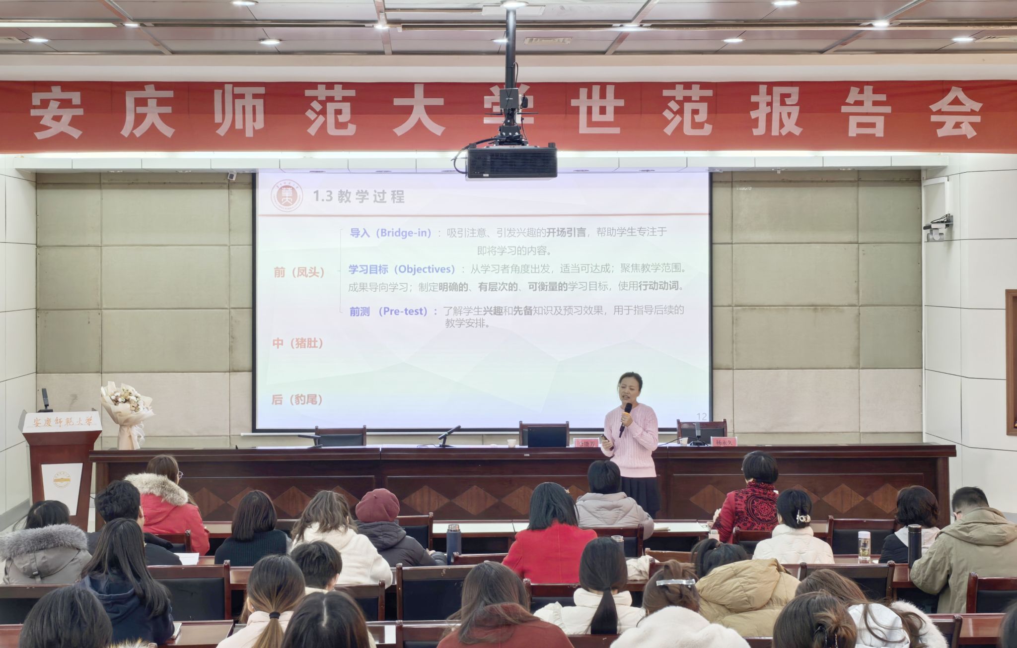 12月19日,beat365英国官网网站“世范报告会”在龙山校区行政楼一楼会议室隆重举行,师生代表100余人参加。