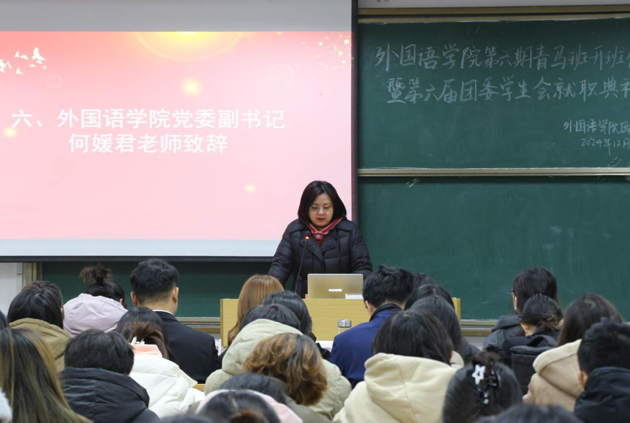 12月20日,外国语学院于E314举行学院第六期“青马班”开班仪式。该院党委副书记何媛君、学工组全体教师出席会议。第六期青马班学员及第六届学生会全体成员共计160余名学生参加会议。