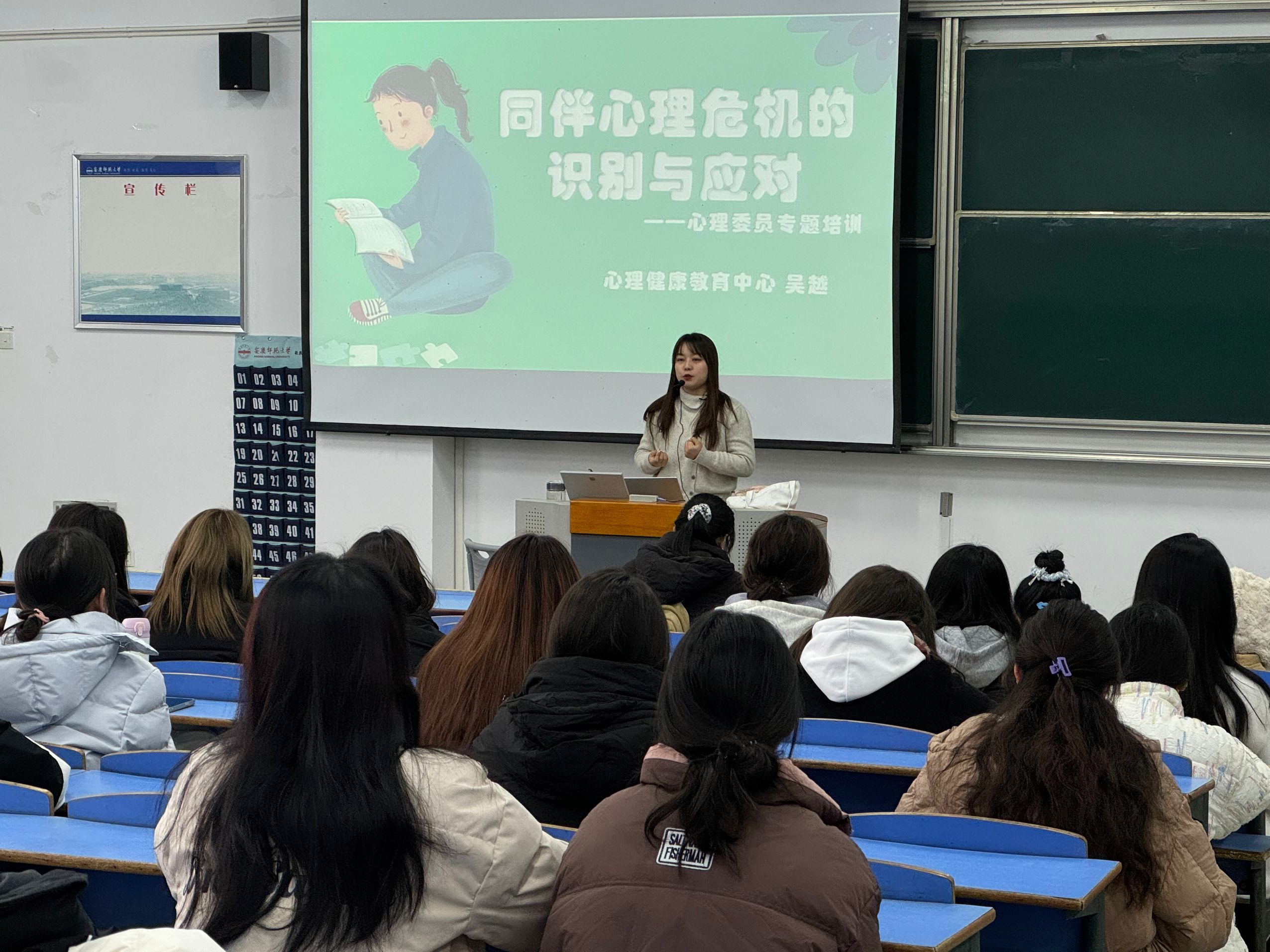 12月29日,beat365官网心理健康教育与服务中心在文津楼208教室举办大学生班级心理委员业务培训,大学生心理健康教育与服务中心教师吴越主讲。2024级全体班级心理委员、校心理服务部100余人参加培训。