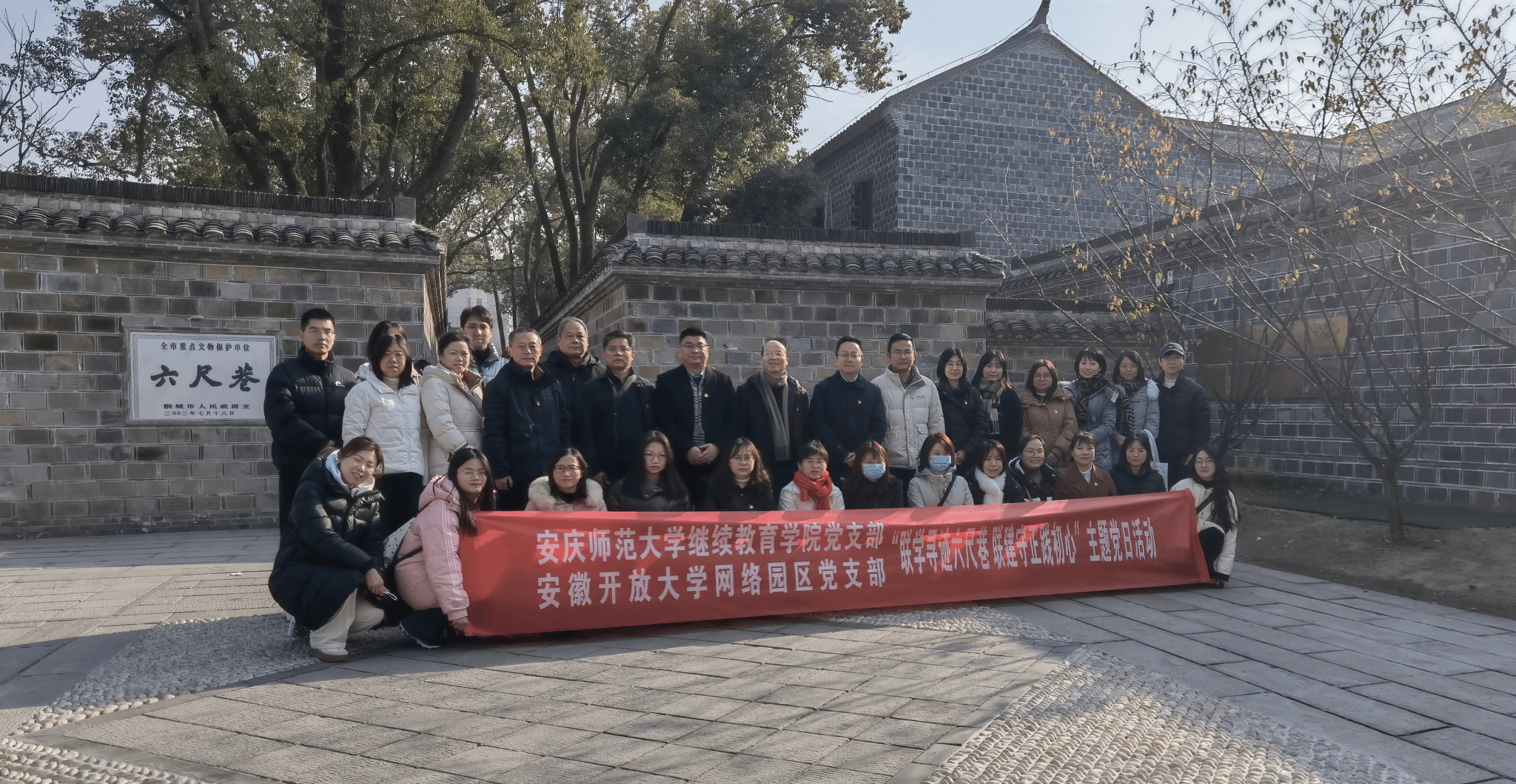 近日,继续教育学院党支部与安徽继续教育网络园区管理中心党支部组织支部党员,前往桐城市六尺巷开展“联学寻迹六尺巷,联建守正践初心”主题党日活动。