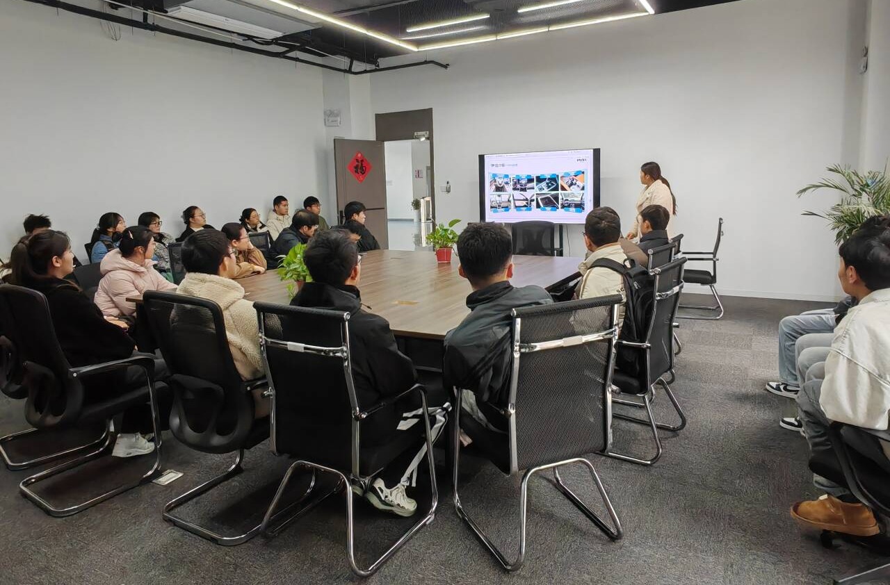 锦美星灿新材料(安徽)有限公司是一家专注于嵌入式功能薄膜、智慧表面功能薄膜及显示类光学薄膜研发、生产和销售的科技型企业,其产品广泛应用于新能源汽车、消费电子等多个领域,是国内市场的领先者。化学化工学院师生一行先后参观了公司现代化生产车间、研发中心及实验室。企业技术总监详细介绍了核心产品研发流程、绿色化工生产工艺及智能化管理系统。同学们近距离观看了实验设备运行场景,就新材料开发、工艺优化等问题与企业工程师展开交流。先进的自动化生产线和严格的质量控制体系,让同学们对现代化工业生产的高效与精密有了直观的认识。