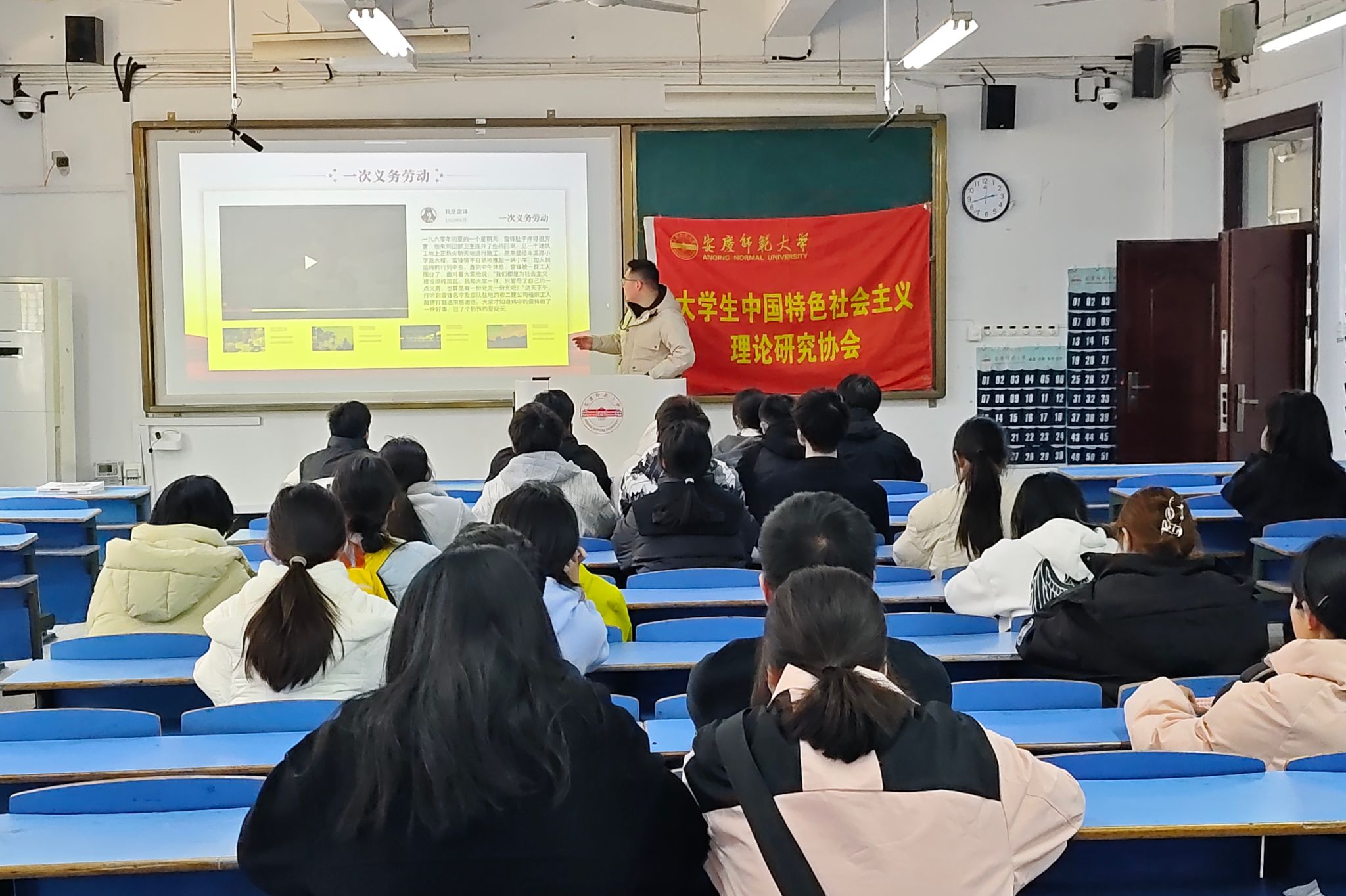 为出租车司机提供饮水补给、开展环保公益活动、分发雷锋精神宣传册……这个月里,在学校东门外、敬敷广场上、安庆菱湖公园中,总能看到马克思主义学院学生忙碌的身影,他们用实际行动争做追“锋”少年,让青春暖流从学习延伸到实践,将丰富精神融入日常生活。