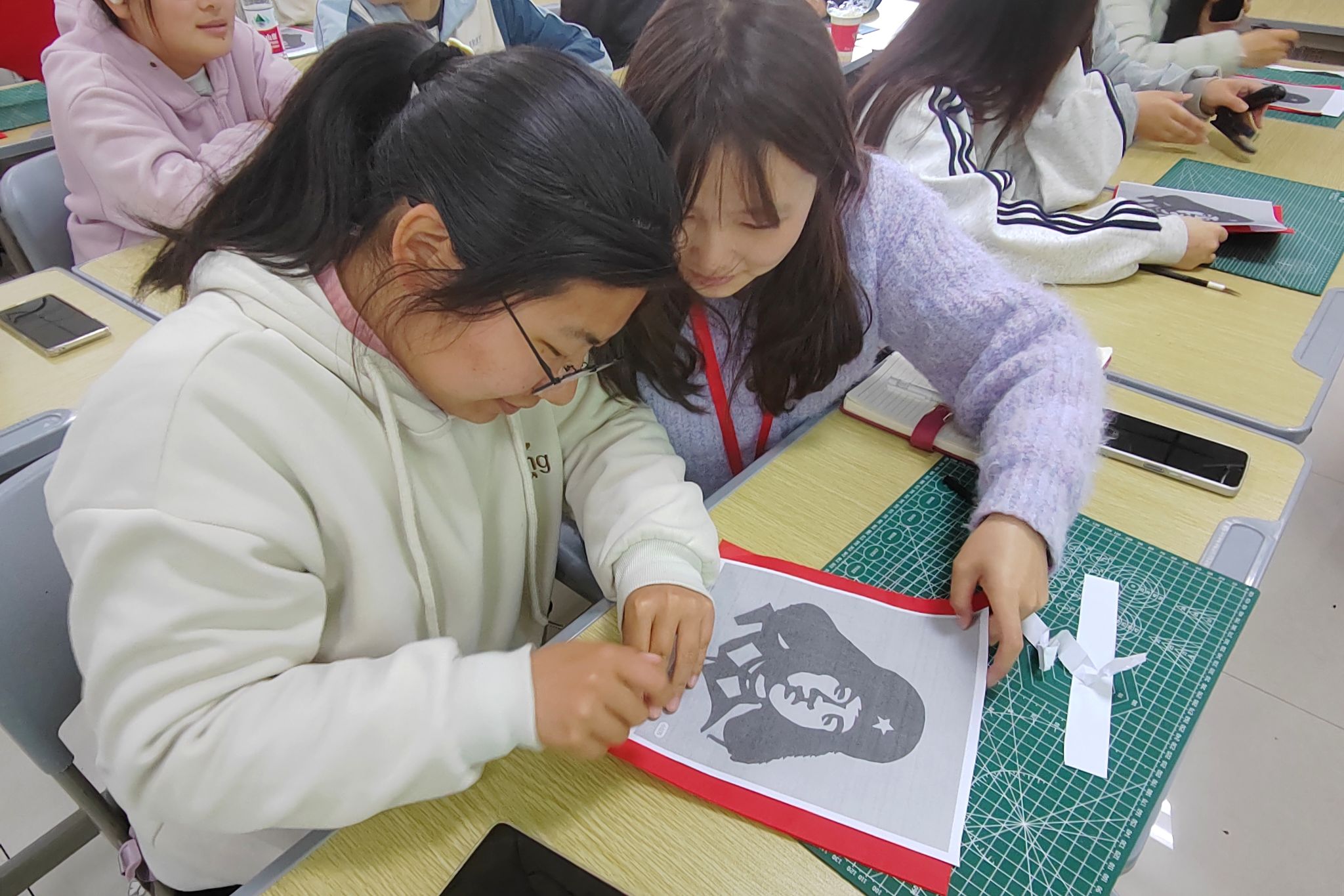 几张彩纸、一把刻刀、一块垫板,随着刻刀在纸上游走,一幅幅雷锋的肖像作品逐渐清晰。思想政治教育专业2024级延乔班宣妙妙在创作中融入自己的小巧思,用细腻的笔触和精巧的设计,完成一幅独具创意的雷锋画像。“刻纸不仅让我领略到传统艺术的魅力,更让我对雷锋精神有了全新而深刻的理解。”宣妙妙说,“雷锋精神不仅是历史的记忆,更是鲜活的力量,在新时代激励着我们勇于担当、无私奉献。”
