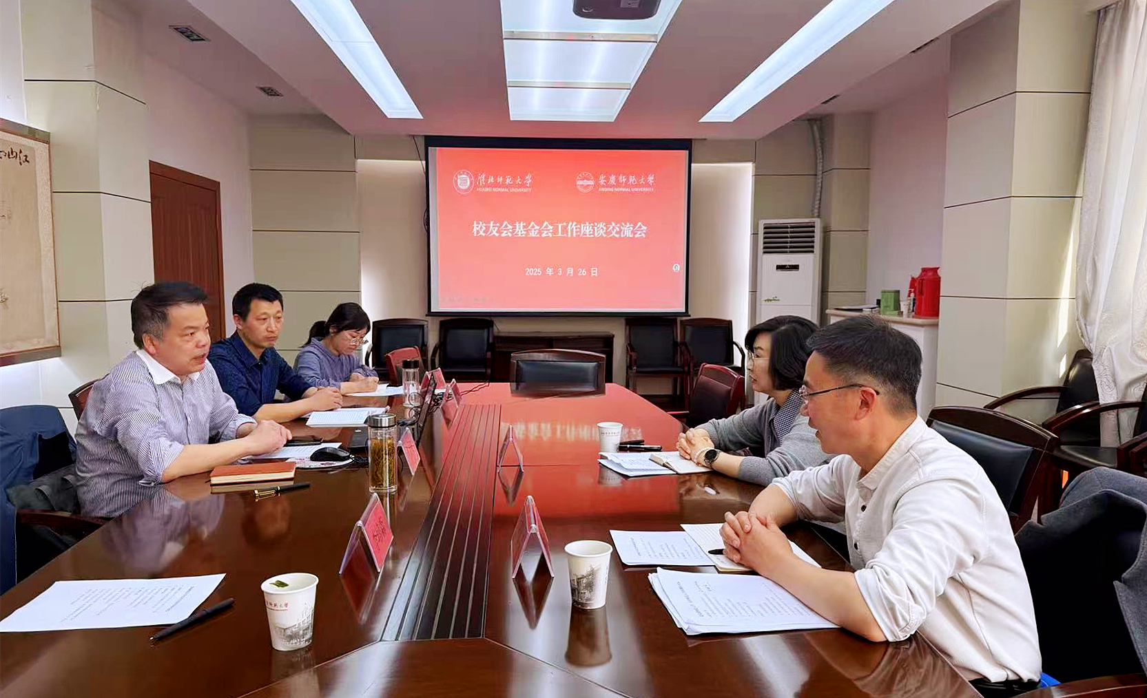 3月26日,淮北师范大学社会合作处处长李璟、副处长刘永亮来校调研校友会和基金会工作。