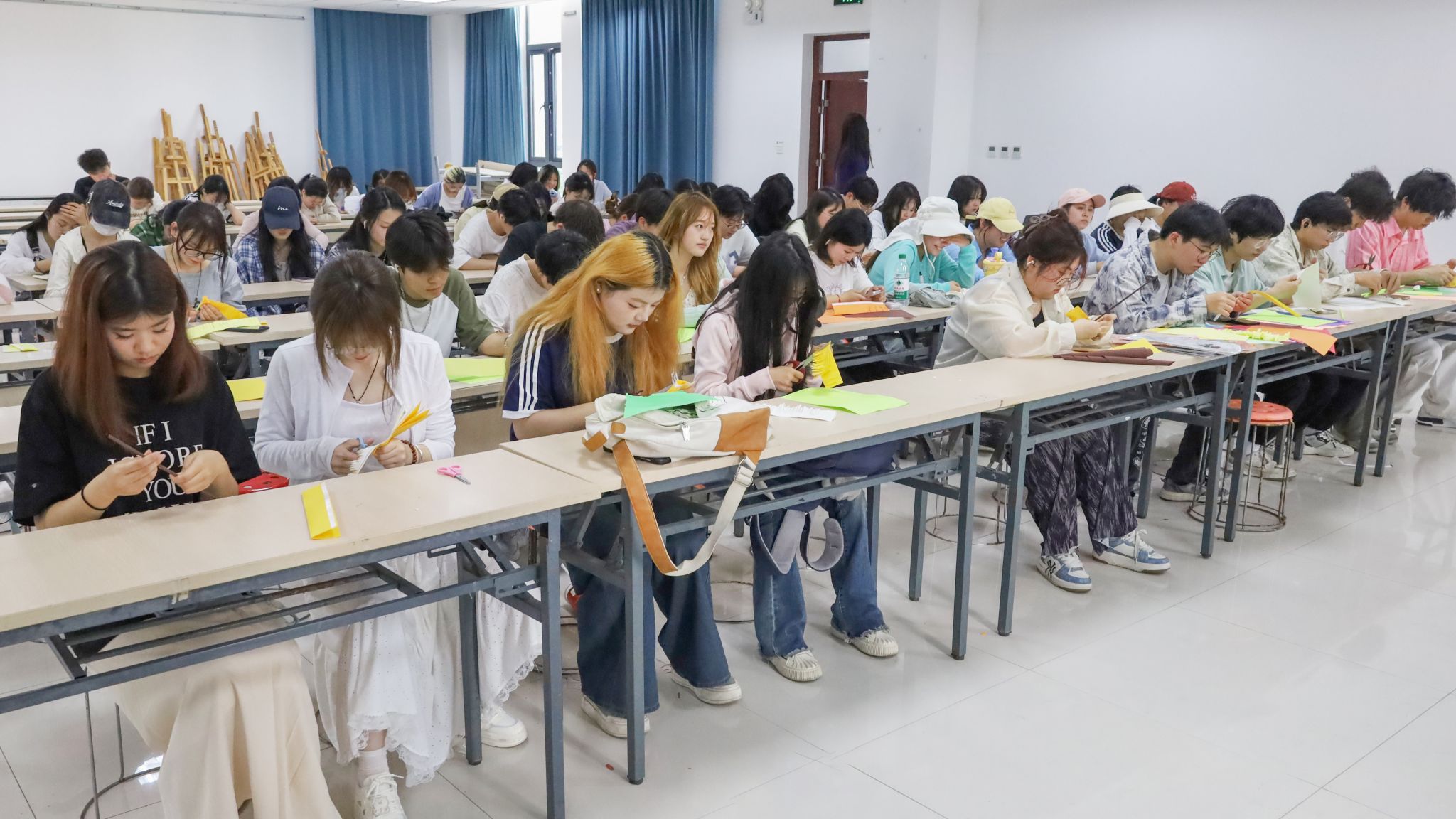 以卡纸、细铁丝为材,折制四十余枚素雅纸花,为让祭扫更具心意,学生们提前三日集结手作纸花。