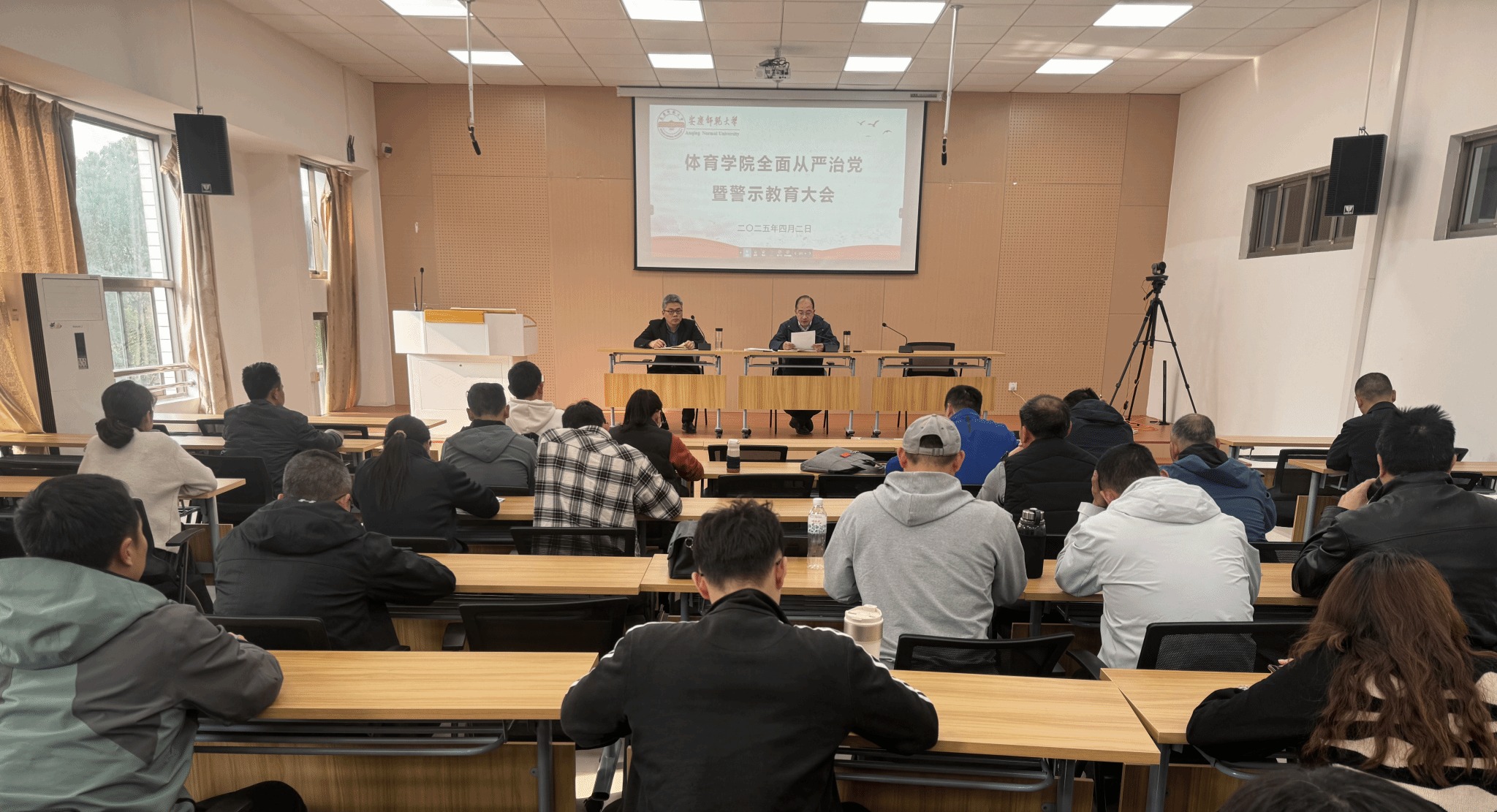 4月2日下午,体育学院在体育馆多媒体教室召开全面从严治党暨警示教育大会,旨在加强党风廉政建设,提升全体教职工的师德修养与纪律意识。体育学院领导班子、全体教职工参会。会议由体育学院党委书记王玮主持。