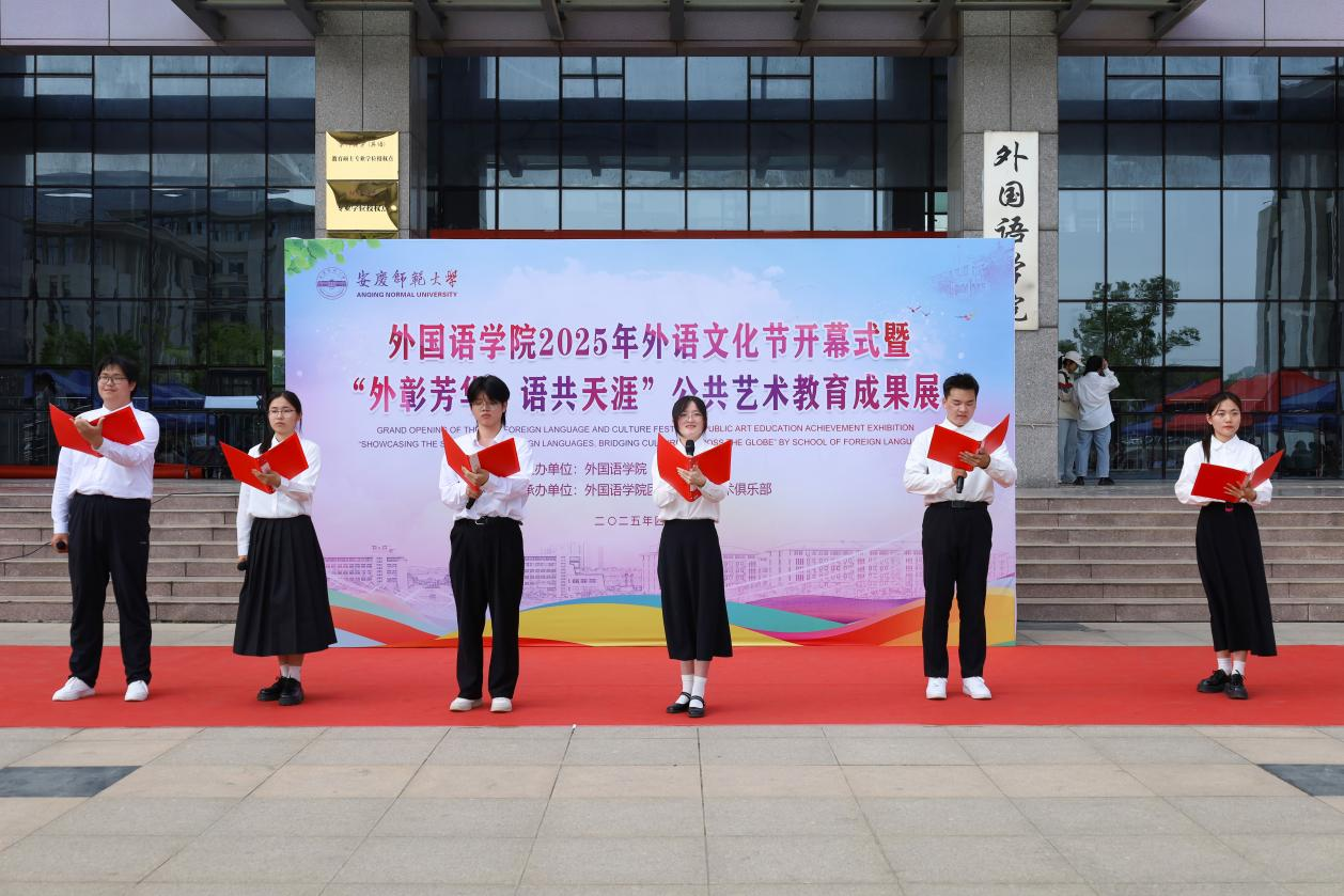 4月9日,外国语学院举行2025年外语文化节开幕式暨“外彰芳华 语共天涯”公共艺术教育成果展。外国语学院党政领导班子成员出席本次活动,全体学工组老师及教师代表、学生代表共500余人参与这场文化与艺术交织互动的活动。
