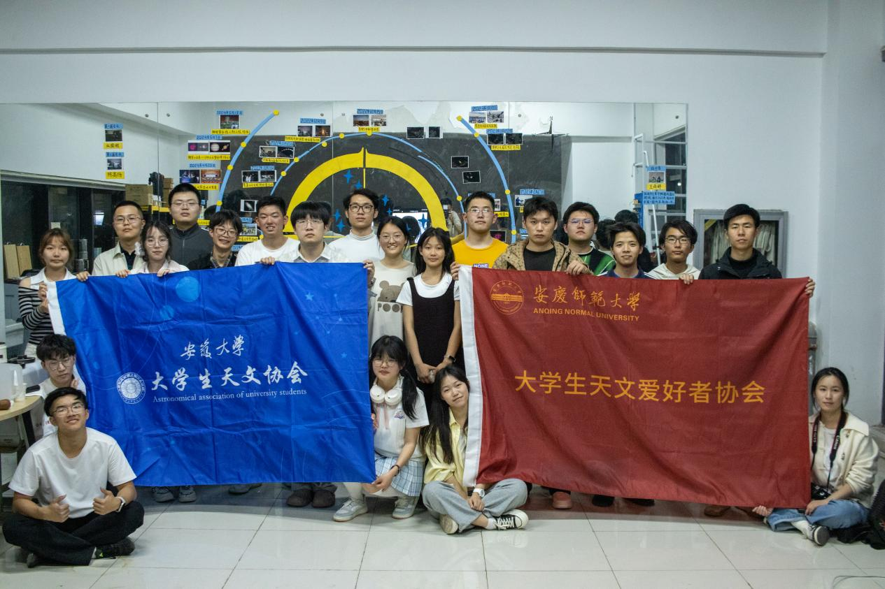 在交流环节中,双方就天文科普推广开展了讨论。双方重点围绕天文科普工作的创新形式展开讨论,并就联合举办天文观测活动、学术讲座等达成合作意向,充分发挥各自优势,实现1+1>2的成效。两校天文协会未来将积极联合中科大等省内高校天协开展更广泛合作,发挥学生社区活力,提高省内大学生天文素养。活动尾声,两校同学合影留念,互赠纪念品。