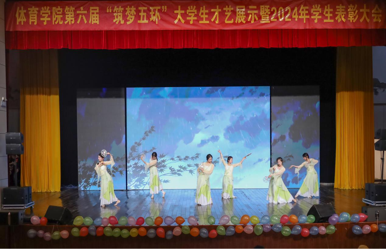大会分为“挺膺担当励青春”和“奋楫扬帆启新程”两个篇章,共有歌曲、舞蹈以及小品等15个节目,并对体育学院2024年度国家奖学金和国家励志奖学金获得者、国家级运动员、先进班集体与优秀寝室、暑期“三下乡”社会实践活动优秀团队等先进集体与个人进行表彰。