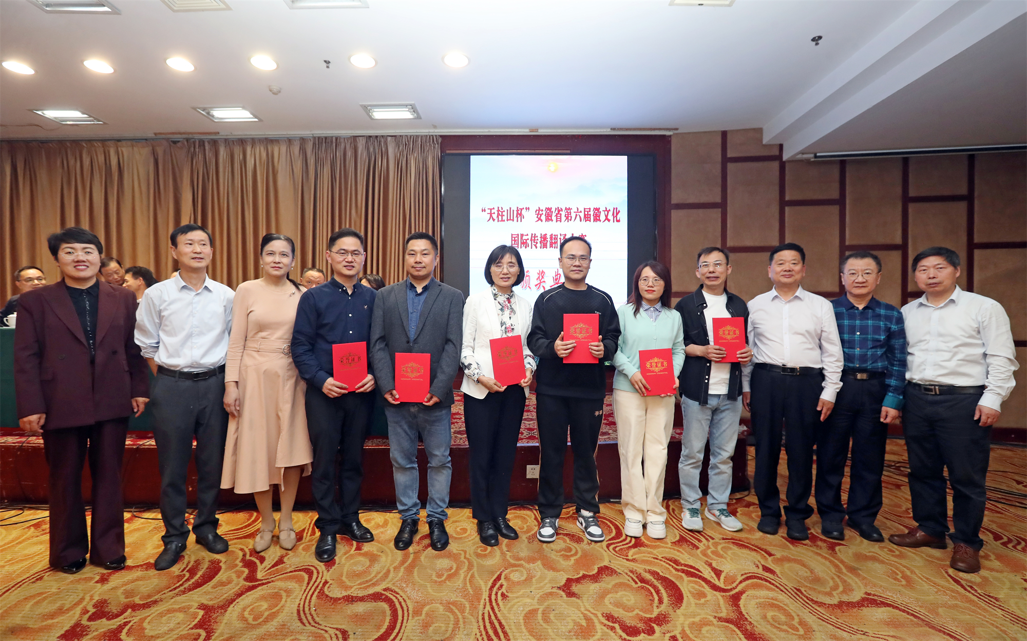 5月8日,beat365官网承办的“天柱山杯”安徽省第六届徽文化国际传播翻译大赛颁奖典礼暨学术讲座在安庆市潜山市举行。安庆市人民政府副秘书长朱学云,安徽省人民政府外事办公室新闻文化处处长文良权,安徽省翻译协会会长徐鸣,安庆市人民对外友好协会会长范翔,潜山市委常委、常务副市长汪沛,外国语学院党委书记徐华胜等领导和嘉宾出席活动。来自安徽大学、合肥工业大学、安徽师范大学等省内高校150余名教师和获奖学生代表参加典礼。