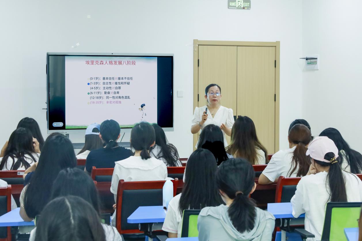 李艳通过调研现场学生恋爱情况,剖析了校园恋爱、网恋等不同恋爱形式下的受众人群心理特征,并结合“埃里克森人格发展八大阶段”理论指出,建立亲密关系是18-35岁青年群体的重要议题,而大学阶段正是女大学生尝试学会“爱人”,培养亲密关系构建能力的关键期。她强调,这一阶段对情感的探索与认知,将直接影响个体未来人际关系模式的建立与心理健康发展。