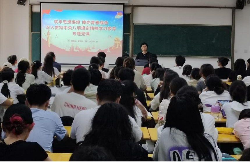 5月21日,数理学院党委副书记、纪委书记彭芳珍以“筑牢思想堤坝 擦亮青春底色 深入贯彻中央八项规定精神学习教育”为主题,为数理学院第30期发展对象以及第71期入党积极分子培训班全体成员开展主题党课。