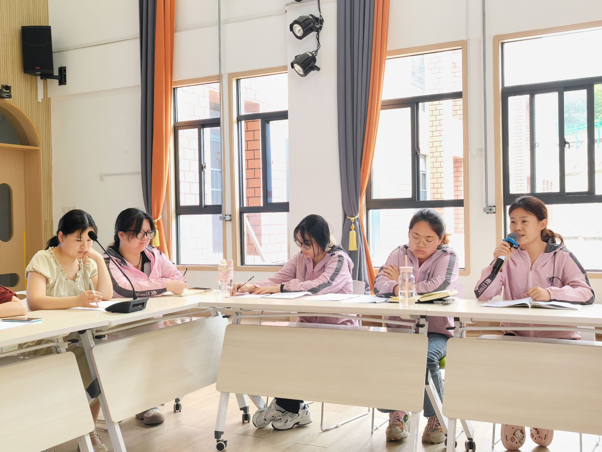 在自由研讨环节,教师与学生围绕“坚持以游戏为基本活动”“杜绝小学化倾向”“幼儿园安全保障”等议题展开深度对话。现场观点交锋、思想碰撞:“一日活动要坚持以游戏为基本,放手给予幼儿自主”;“幼小衔接需要明晰儿童发展规律,加强家园沟通交流,有效缓解家长焦虑”;“安全是幼儿园不可逾越的底线,必须时刻坚守”······