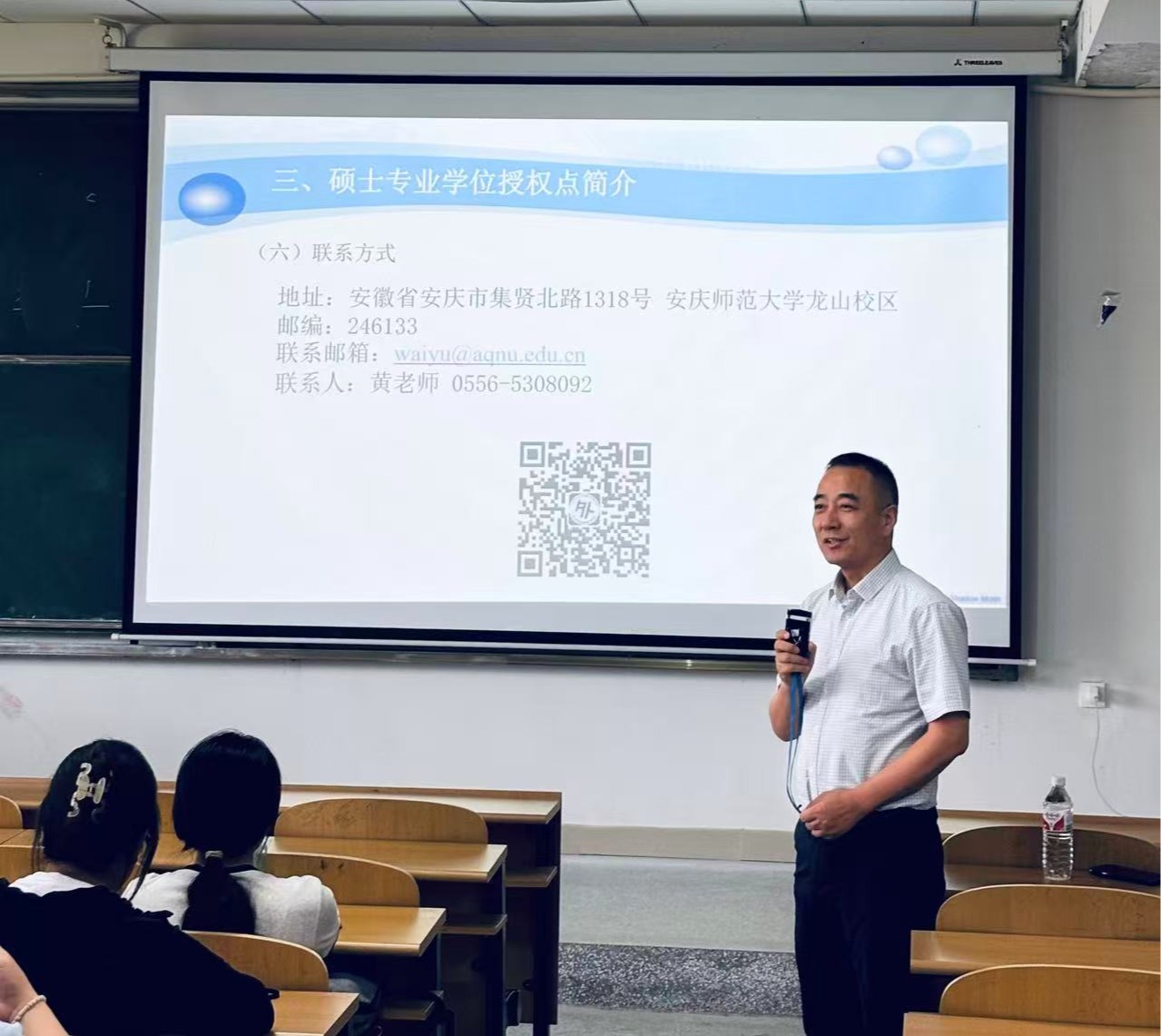研究生招生宣传是外国语学院加强优质生源基地建设、提升研究生教育质量的系列举措之一。外国语学院将持续推进研究生招生宣传工作,不断拓展合作院校,提升招生实效与学院影响力。(撰稿、摄影:马龙 编辑:江伟 审核:江加宏 赵丽丽)