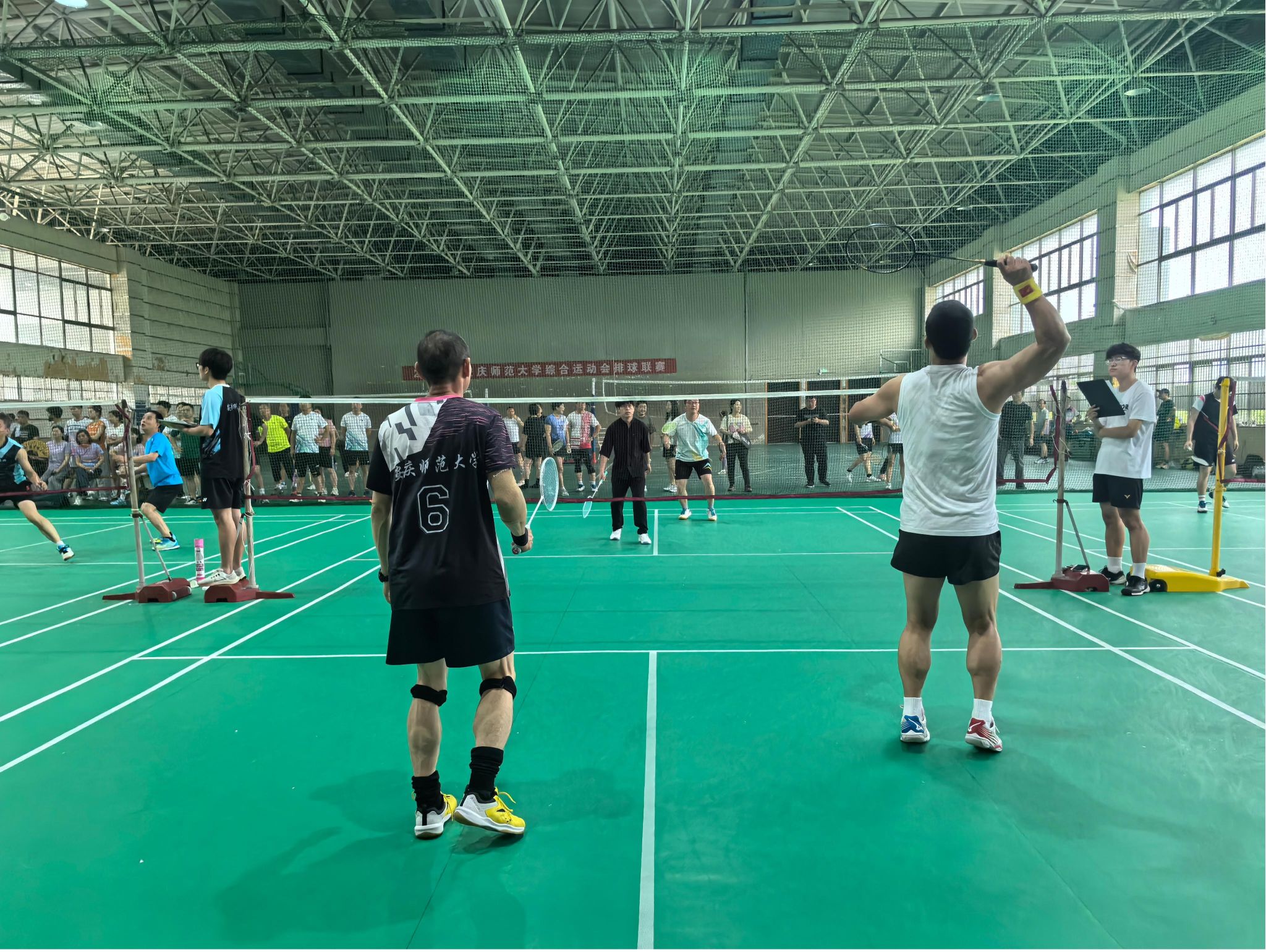 6月7日,学校第六届教职工羽毛球比赛在龙山校区羽毛球馆火热开赛。本次比赛吸引了学校17个分工会12支队伍100余名教师同场竞技,尽显活力风采。