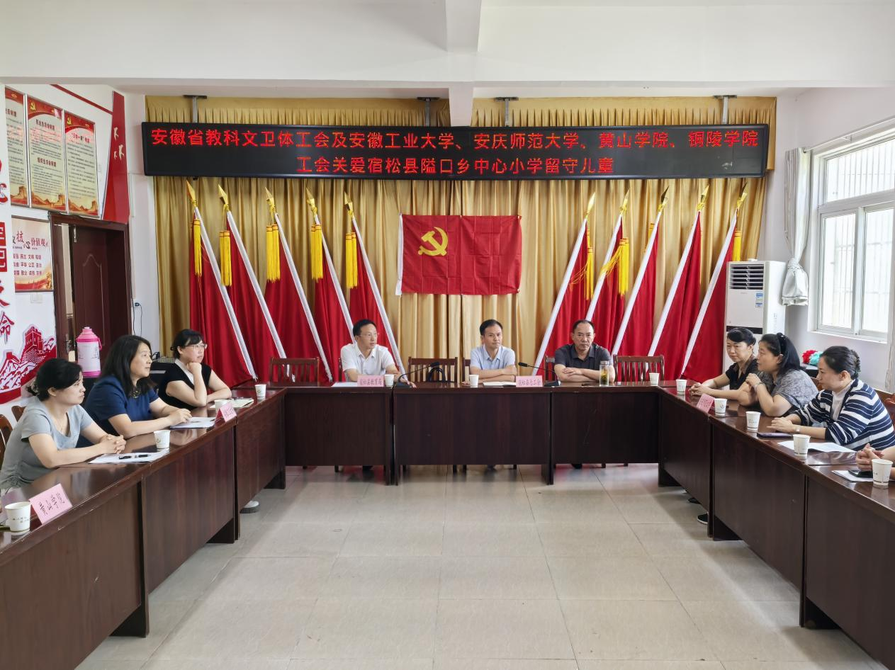 6月13日,校工会前往宿松县隘口乡中心小学开展关爱留守儿童活动。本次活动由安徽省教科文卫体工会主办,安徽工业大学工会、beat365英国官网网站工会、黄山学院工会和铜陵学院工会参与。
