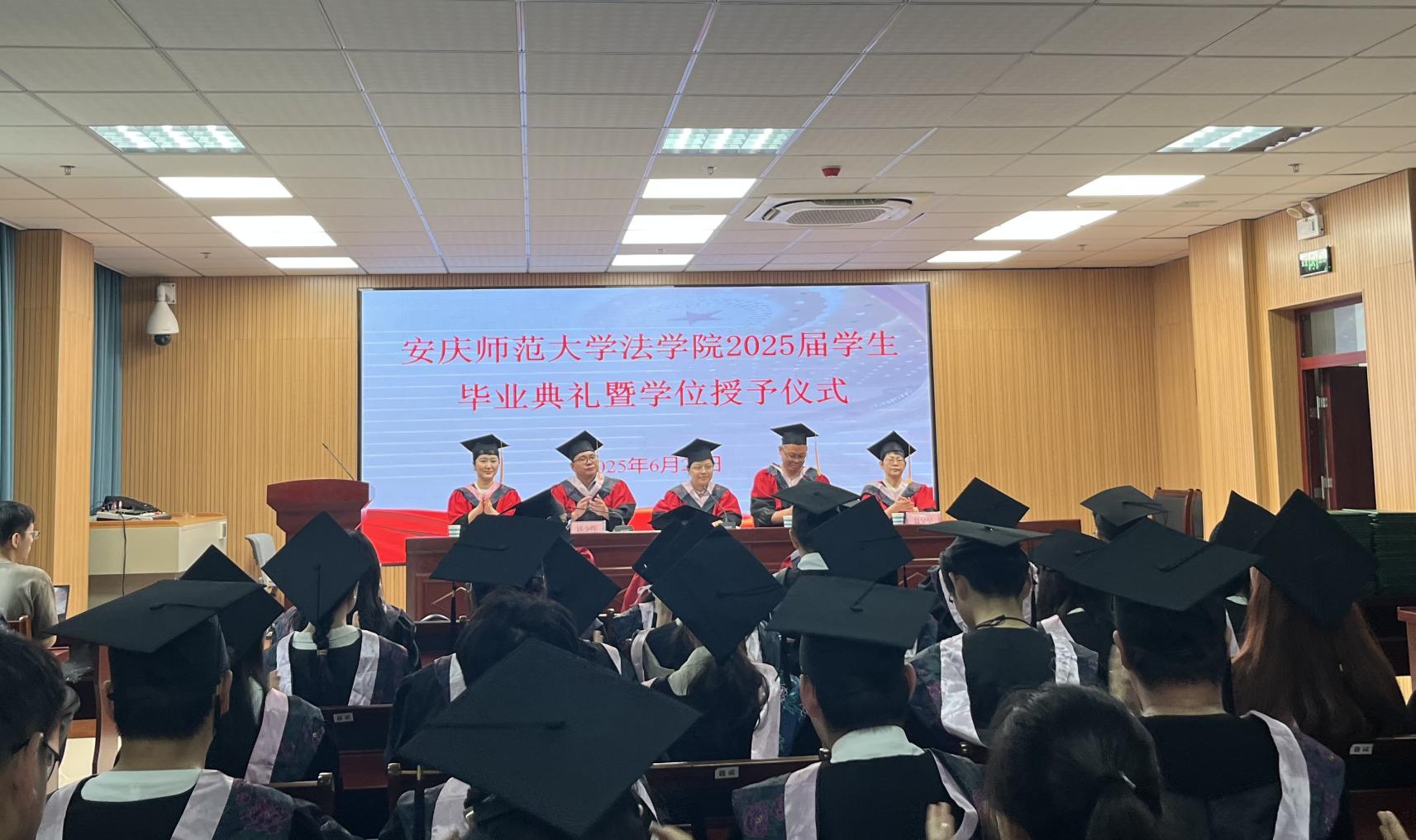 6月20日,法学院在102报告厅举办2025届学生毕业典礼暨学位授予仪式。法学院党政领导班子全体成员、学位评定委员会全体成员、2025届硕士毕业生导师、毕业班全体辅导员、本科和硕士毕业生代表共100余人参加毕业典礼。典礼由法学院党委书记钱敏主持。