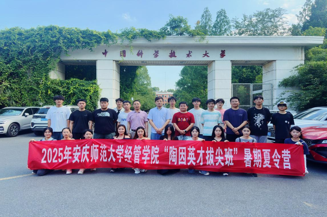 6月27日至7月2日,经济与管理学院2023级金融工程“陶因班”赴中国科学技术大学开展为期一周的暑期夏令营,主题为“提升科研能力,塑造卓越素养”。本次夏令营活动由经济与管理学院副院长黄光锋和金融工程专业负责人张德亮博士带队,围绕学术提升、行业认知与文化浸润等多维度展开,为“陶因班”学子们带来了一场充实而难忘的学习经历。