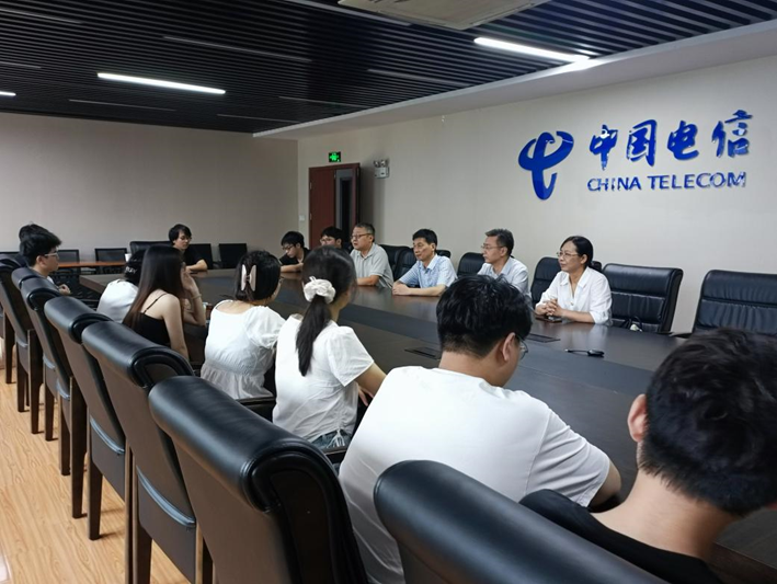 8月1日,数理学院党委书记陆健、副院长易明芳、实习指导教师戴林送前往中国电信安庆分公司筑梦园区、安庆市宜秀区统计局和宜秀区委政法委,看望并慰问正在实习的学生,深入了解2026届非师范生在毕业实习期间的思想动态、生活状况与工作表现,传递学院关心关爱。中国电信安庆分公司副总经理张胜利、安庆市宜秀区统计局局长朱青和宜秀区委政法委书记吴传斗及各实习单位的实习指导老师热情接待并组织召开了实习生座谈会。