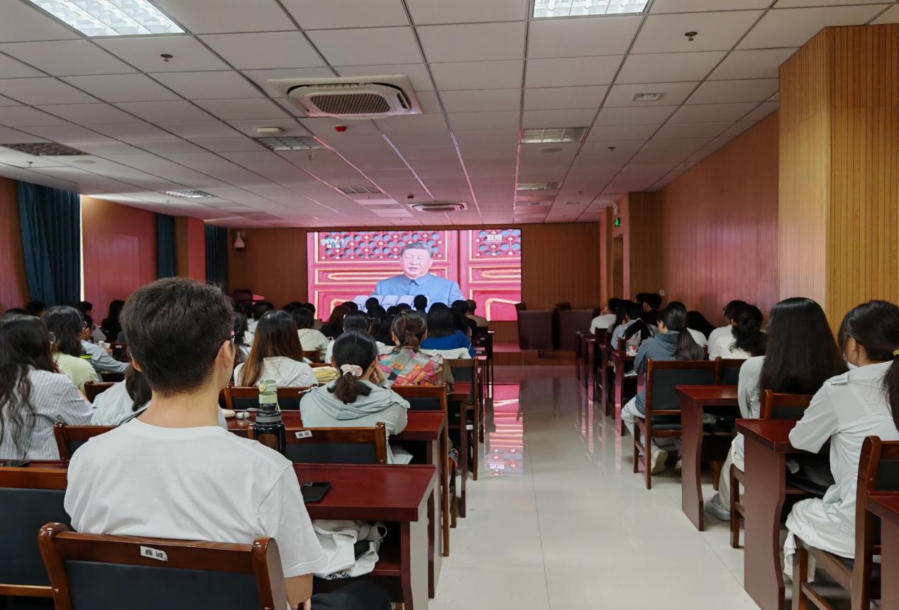 9月3日,纪念中国人民抗日战争暨世界反法西斯战争胜利80周年大会在北京天安门广场隆重举行。法学院党政领导班子全体成员、教师代表和学生代表共100余人在法学院102会议室集中收看大会直播。