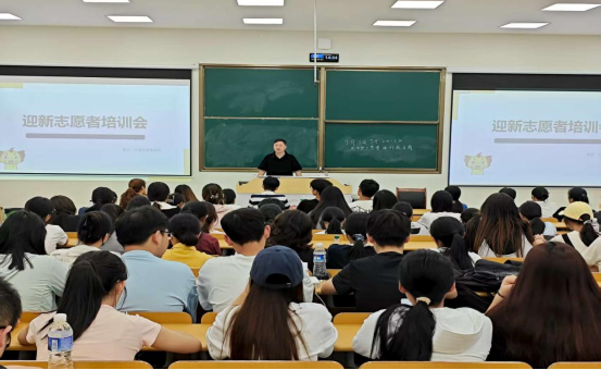 9月3日,法学院在教学楼c108教室举办迎接2025级新生工作志愿者培训会。法学院团委负责人高陆路主持培训会,全体迎新志愿者共200余人参加培训。