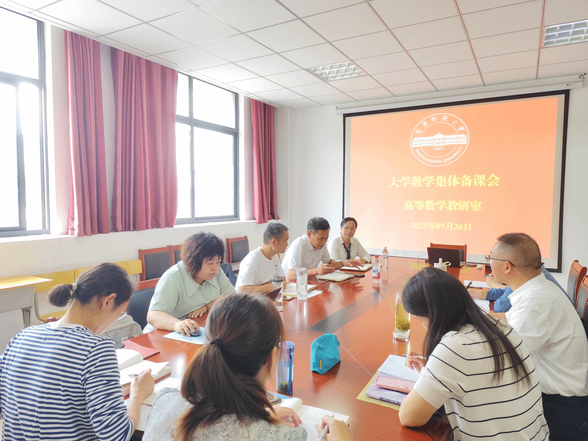 9月26日上午,数理学院在数理楼I407召开大学数学集体备课会,教务处处长潘锦云、校教学督导胡万宝、数理学院副院长易明芳、数学与应用数学系主任舒阿秀及大学数学A班任课教师参加会议。会议由易明芳主持。