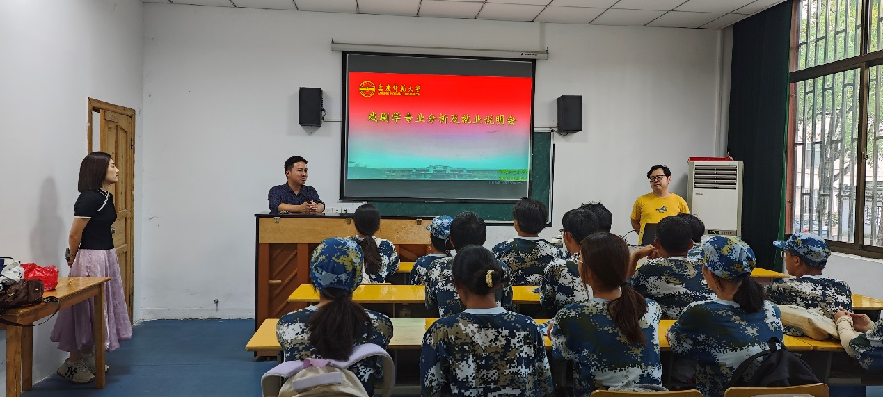 9月22日,黄梅剧艺术学院在黄梅剧艺术楼一楼排练厅召开戏剧学专业新生见面会。学院党总支书记汪超、专业硕士生导师宋璨璨、班级辅导员和戏剧学专业全体新生参加见面会。