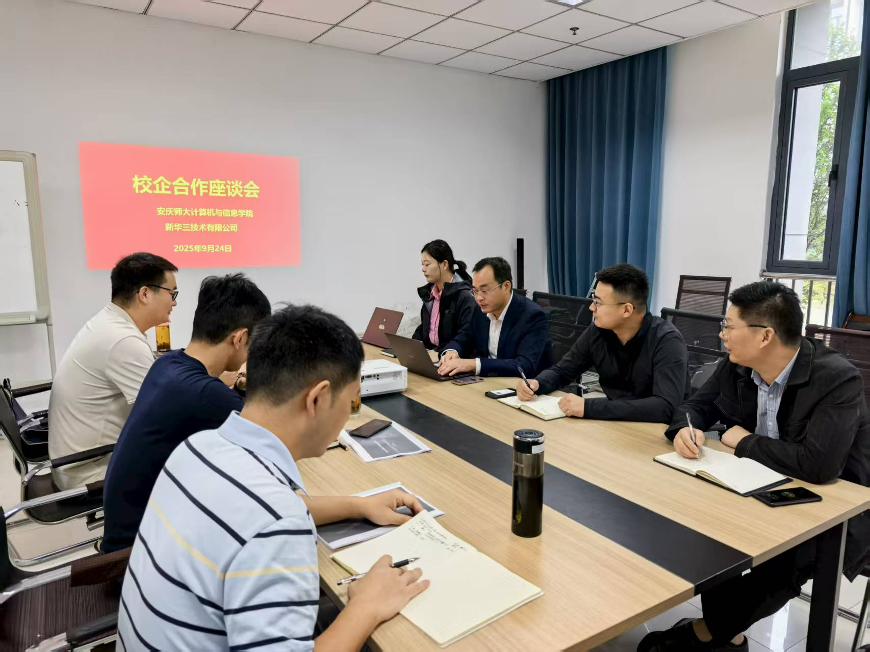 9月24日,计算机与信息学院在L106会议室举办校企合作交流座谈会。会议由学院院长王远志主持,副院长吴海峰、院长助理汪文明、学院博士教师代表以及新华三技术有限公司代表参加座谈会。