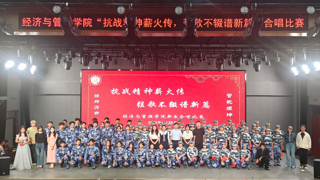 本次大赛以悠扬的歌声赓续伟大抗战精神,借集体合唱让爱国情怀在师生间迸发。活动通过舞台竞技,推动各班级挖掘抗战歌曲的文化内核与精神力量,激发学生参与班级排练的热情和凝聚班级力量的主动性,为增强班级向心力、构建特色学院文化注入新动能。未来,经济与管理学院将继续以这类主题合唱活动为载体,让青年学子在传唱红色旋律中厚植家国情怀,展现时代光彩。(撰稿:李佳 郭靖萱 摄影:闫静茹 孟江峰 编辑:田梦甜 审核:刘燕杰 赵丽丽)