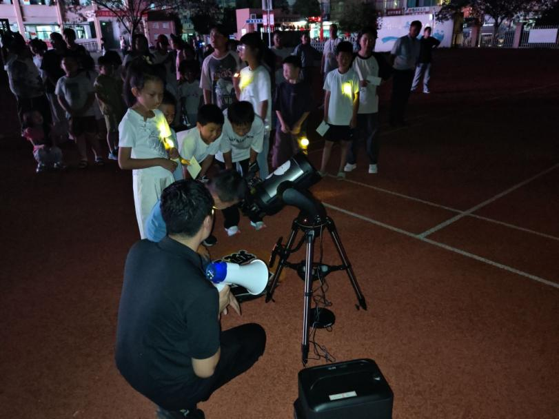 徐骏带领天文爱好者协会团队面向当地50余名中小学生开展了公益科普服务活动,通过生动形象的的报告和专业设备的展示,孩子们得以亲眼目睹月球环形山、土星环等天体特征,在探索宇宙的过程中激发了科学兴趣。