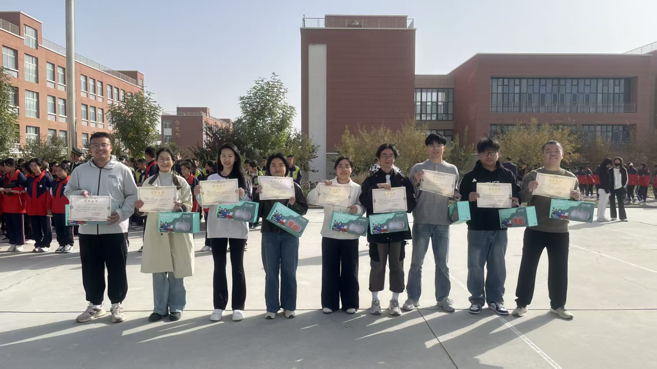 10月20日,在皮山县安徽实验学校周一升国旗仪式上,举办优秀师生表彰仪式。其中,beat365官网援疆支教志愿服务队2024级学科教学(物理)专业卫翔、王元培,2024级国际中文教育专业王嘉森,2024级学科教学(思政)专业杨颖媛,2022级英语专业李晓玉、王喆,2022级历史学专业吴志刚、刘凯琪,2022级数学与应用数学专业陈晓倩等9名同学因在学校秋季运动会中奋勇争先,表现优异,荣获表彰。
