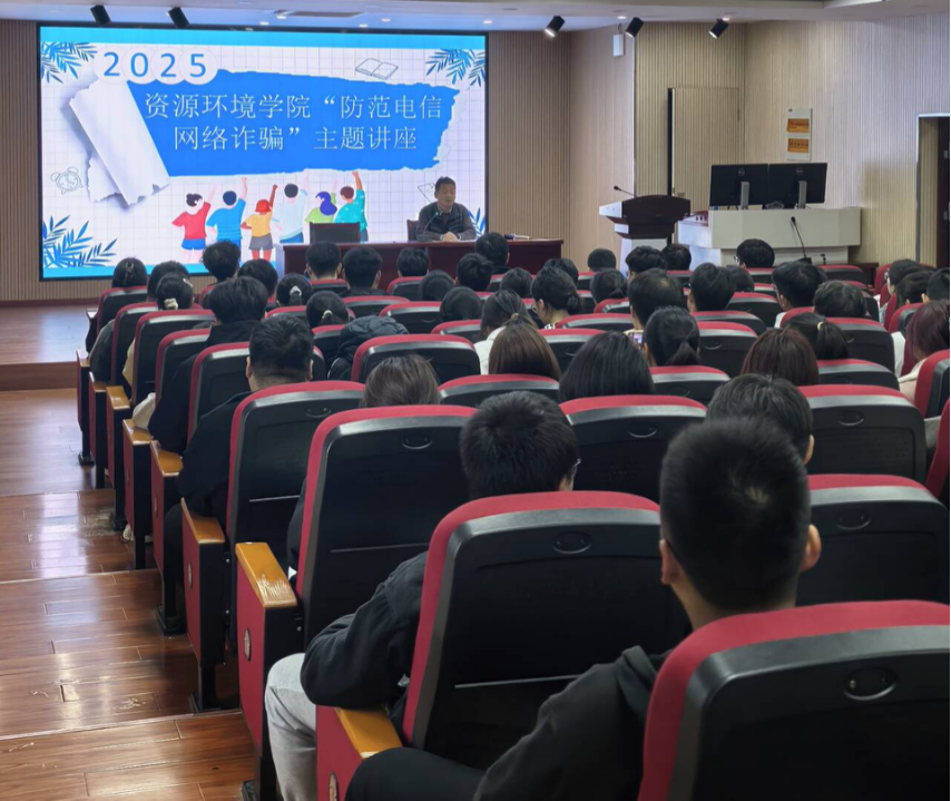 此次讲座是资源环境学院推进校园安全工作的重要环节,有效提升了师生的反诈意识和应对能力,为营造安全、稳定的校园环境奠定了坚实基础。学院将持续加强防诈宣传教育,切实筑牢校园安全屏障。(撰稿:胡珂 赵淳锐 摄影:胡珂 编辑:田梦甜 审核:黄建平 赵丽丽)