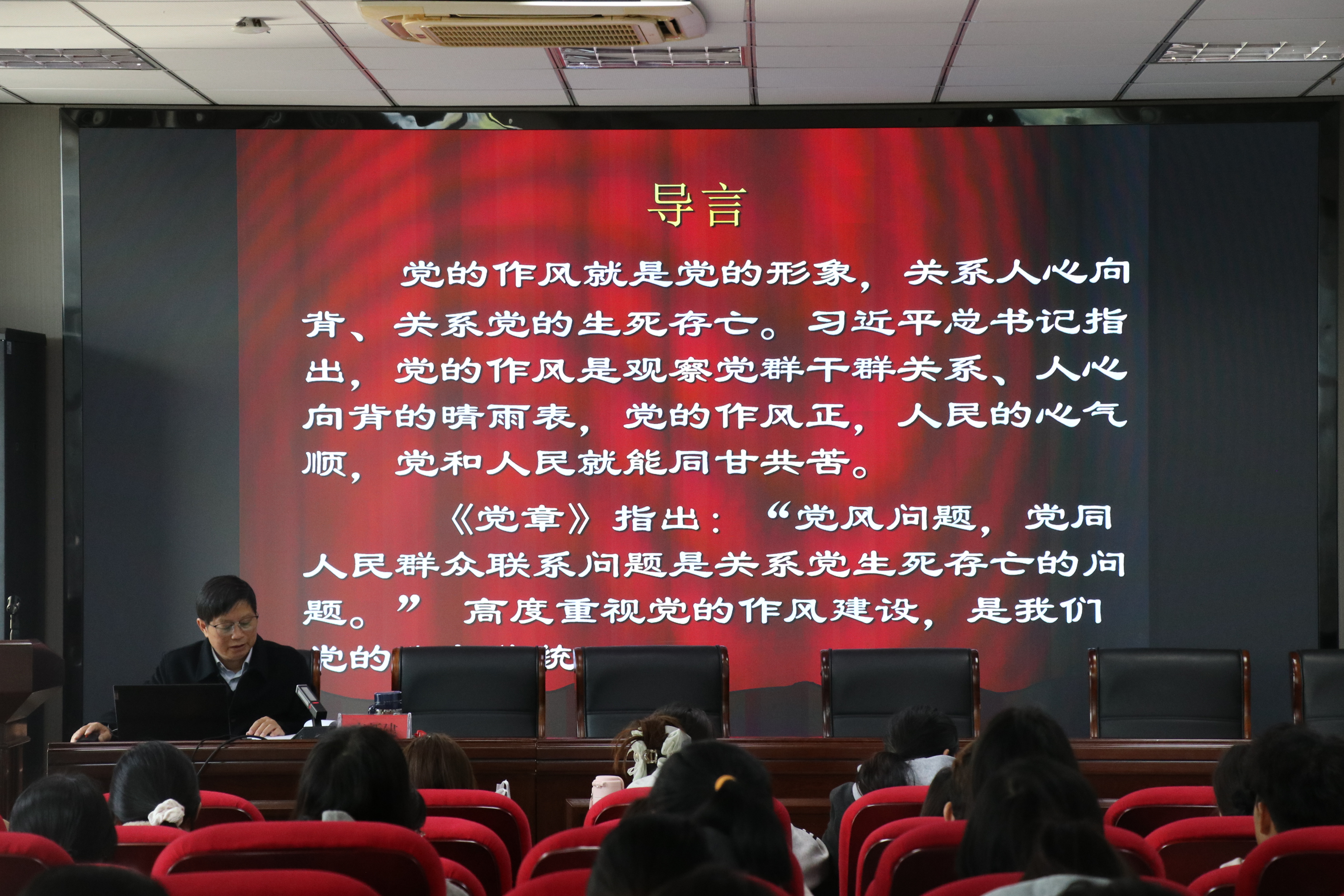 开班仪式结束后,李新建围绕党的作风建设讲授培训第一课。他系统阐释了党的作风建设的历史脉络与核心要义。他强调,作为新时代的青年学子,要将党的优良作风内化于心、外化于行,努力用理论武装头脑、用实践锻炼筋骨、用服务贴近群众、用反省砥砺品格,在学思践悟中强党性、正作风,奋力书写为强国建设、民族复兴挺膺担当的青春篇章。(撰稿、摄影:廖昳淇 编辑:田梦甜 审核:鲍青燕 赵丽丽)