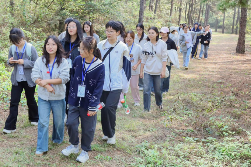 登山途中,学生们或驻足记录漫山秋色,或巧用树枝制作临时登山杖,更不乏先登者返身搀扶后来者的暖心场景。“想体验爬山,也希望能结交新朋友。”旅游管理2025(1)班的孔翊萱说,“这次活动让我感到非常惬意。”
