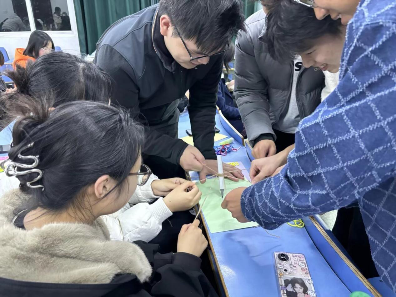 紧随其后的“时光纤维”活动,则是一场关于时间与意义的静谧探索。在这里,同学们借助毛线、画笔和A4纸,将内心深处重要的记忆进行“可视化”创作。一针一线,缠绕粘贴,仿佛在梳理生命的脉络。大家专注于指尖的流动,将“过去”的积淀、“现在”的感悟与“未来”的期许巧妙地编织在一起,构筑起一座座独特的“意义之桥”。这个过程为快节奏的校园生活提供了一个难得的“慢下来”的契机,让同学们在手工的宁静中,完成了一次与自我对话的心灵旅程。